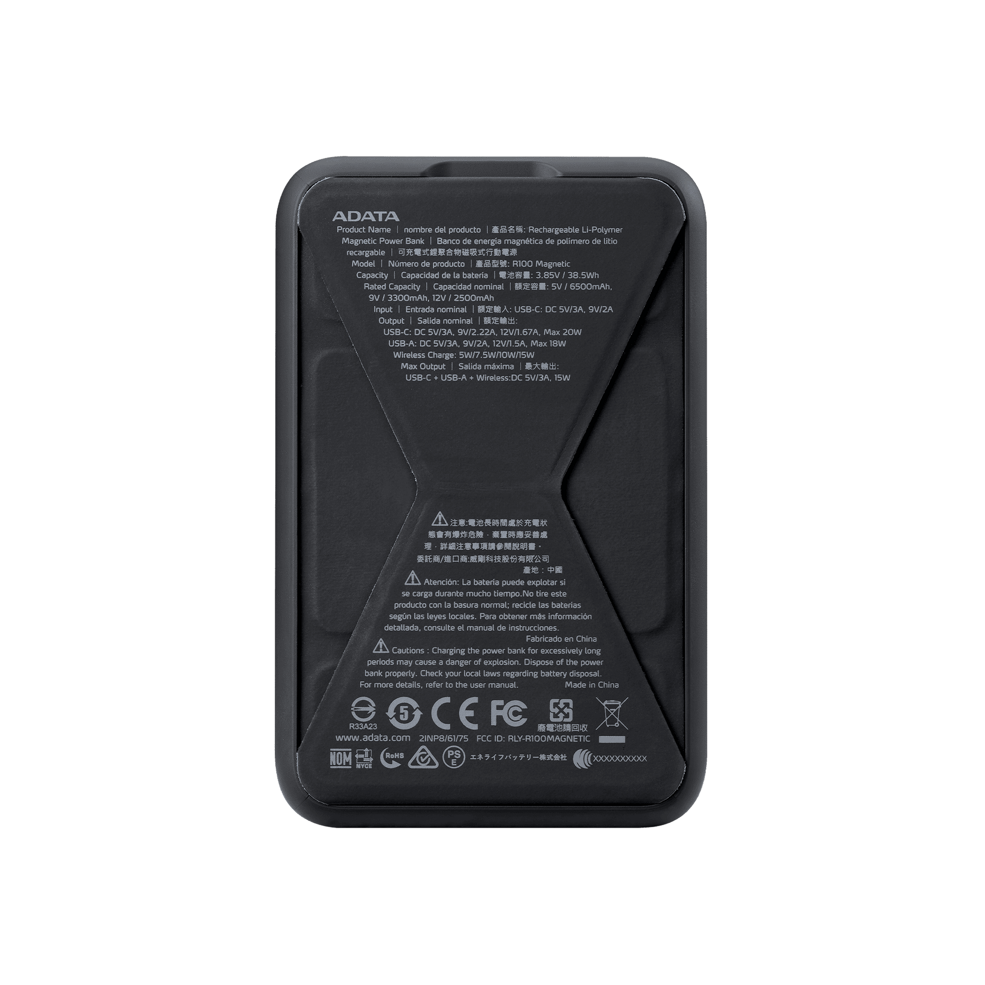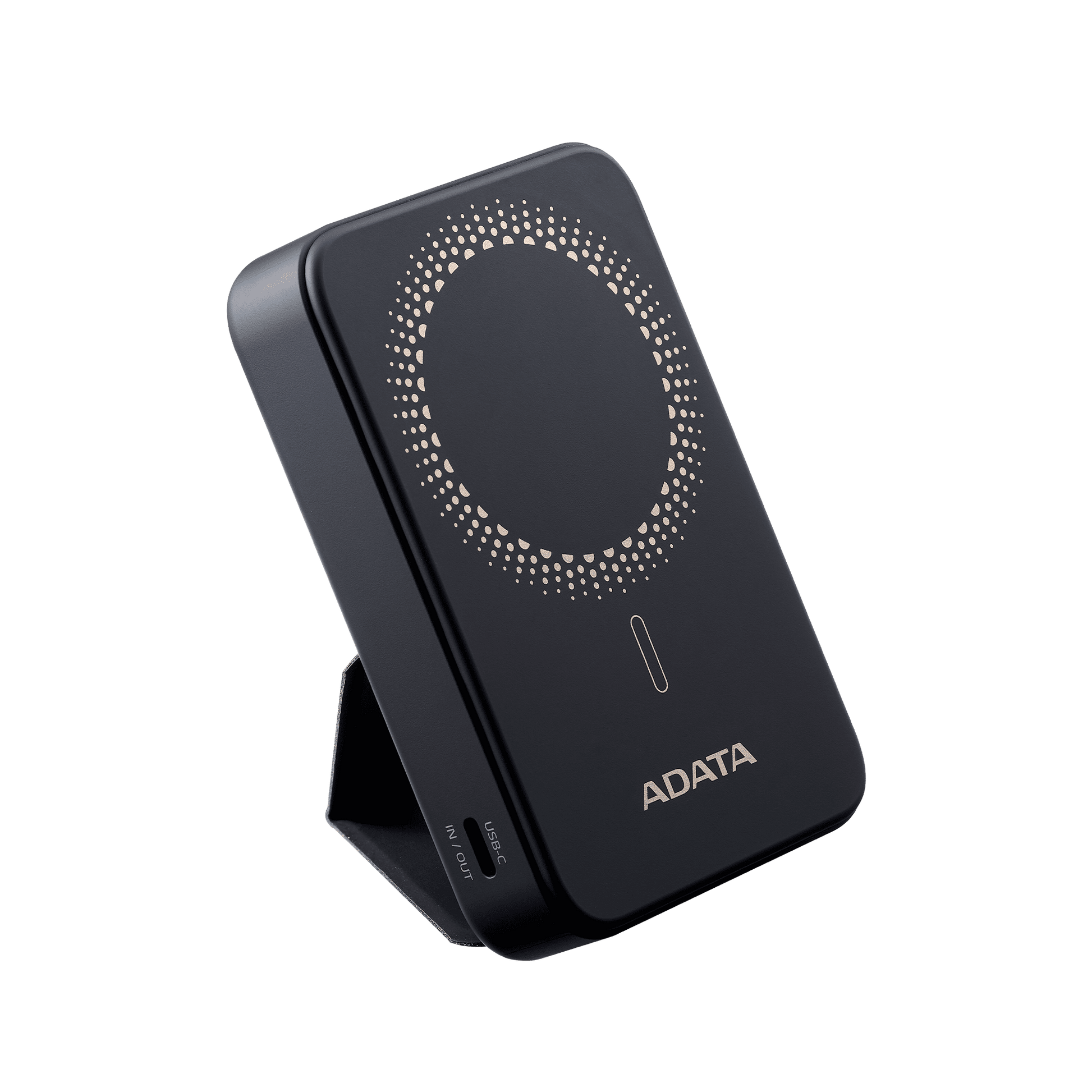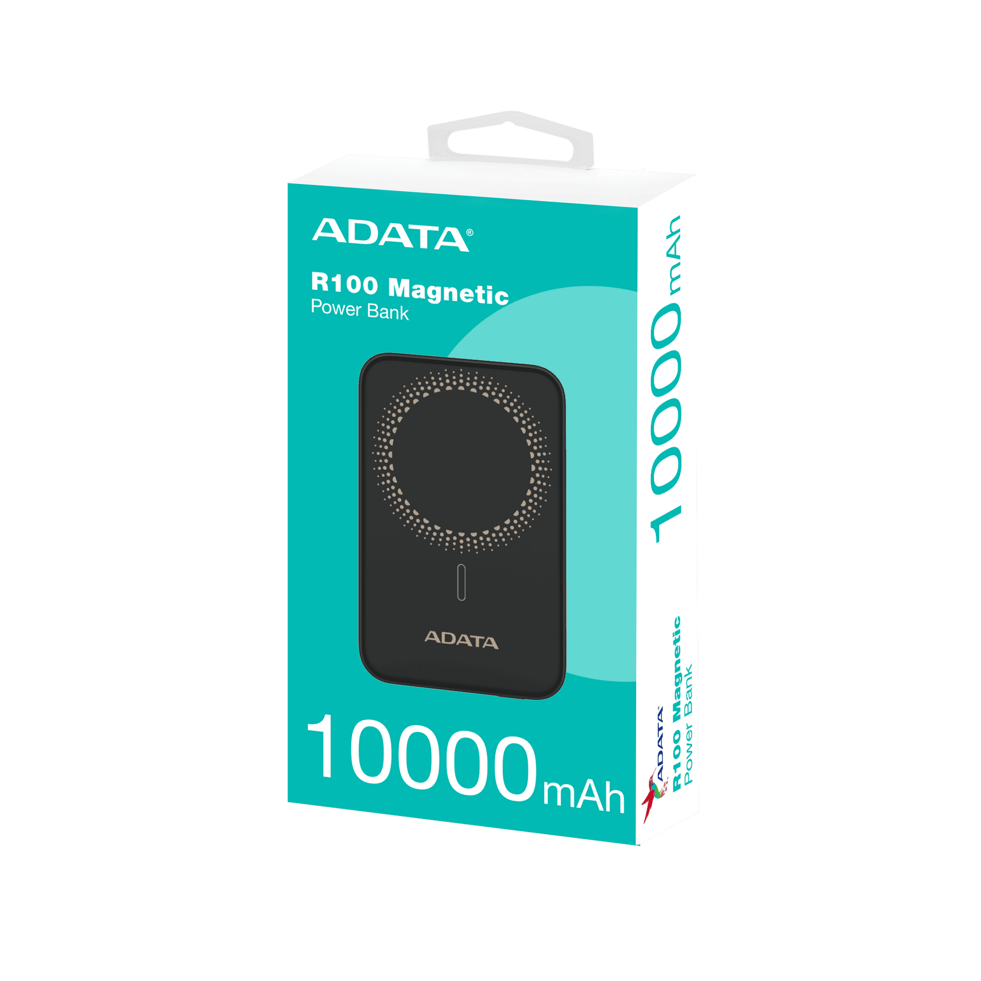 بنك طاقة مغناطيسي ADATA R100 بسعة 10,000 مللي أمبير/ساعة - Qi لاسلكي بقوة 15 وات، وPD/QC USB-C بقوة 20 وات، ومنافذ مزدوجة للأجهزة، وحامل قابل للطي، وشحن مباشر