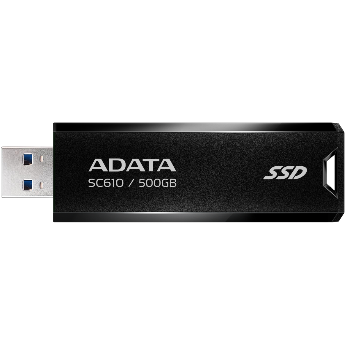 ADATA SC610 SSD خارجي USB 3.2 Gen2 سرعة قراءة 550 ميجابايت/ثانية سرعة كتابة 500 ميجابايت/ثانية بدون غطاء، سحب بالكبسة، بدون كابل - 500 جيجابايت