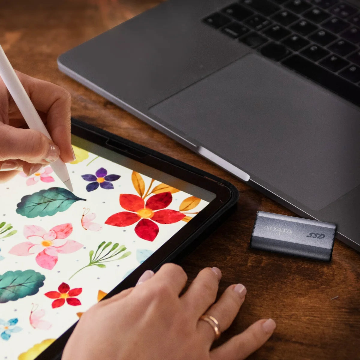 قرص تخزين خارجي SSD من ADATA SC750 بسعة 2 تيرابايت - USB 3.2 من الجيل الثاني، بسرعة 1050 ميجابايت/ثانية، بدون كابلات للهواتف وأجهزة الألعاب، متوافق مع ProRes