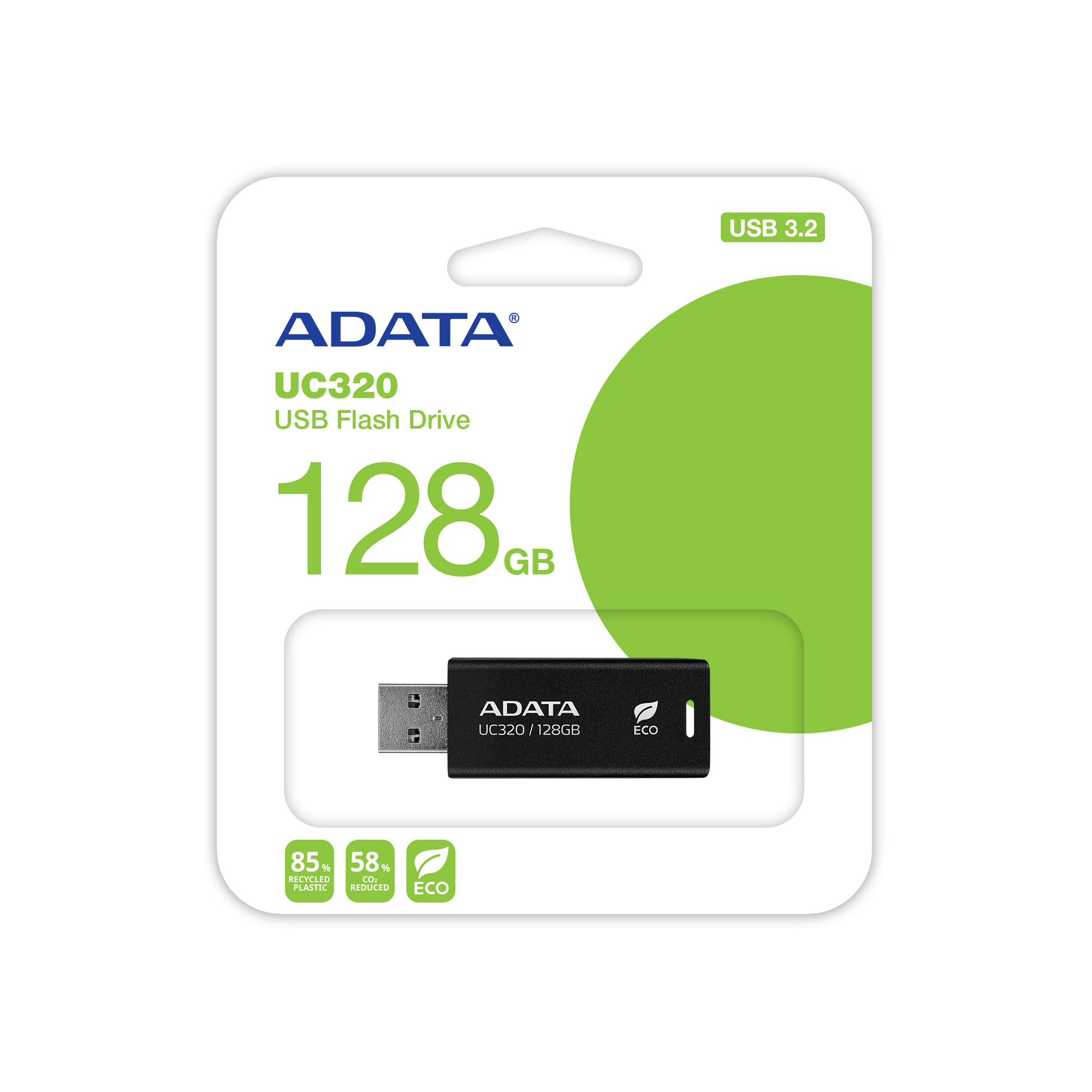 DATA UC320 وحدة تخزين فلاش USB 3.2 Gen1 بلاستيك معاد التدوير بنسبة 85% تصميم صديق للبيئة بدون غطاء مع موصل منزلق - 128 جيجابايت