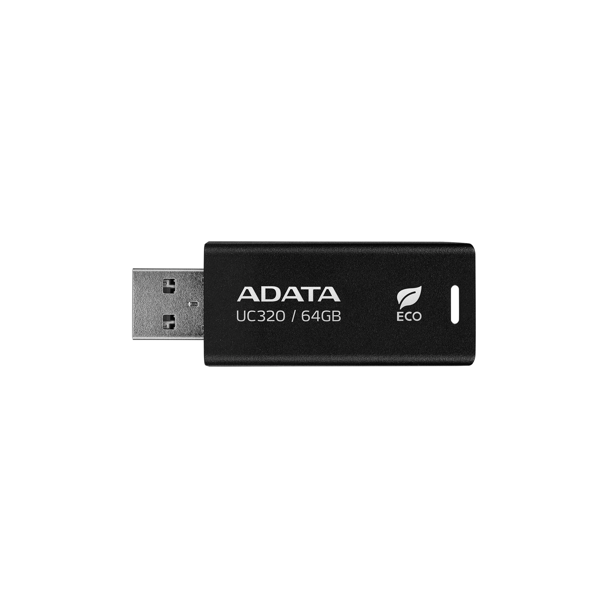 محرك أقراص فلاش ADATA UC320 USB 3.2 سعة 64 جيجابايت - تصميم منزلق بدون غطاء، بلاستيك PCR، سرعة 5 جيجابايت في الثانية، حلقة سلسلة مفاتيح