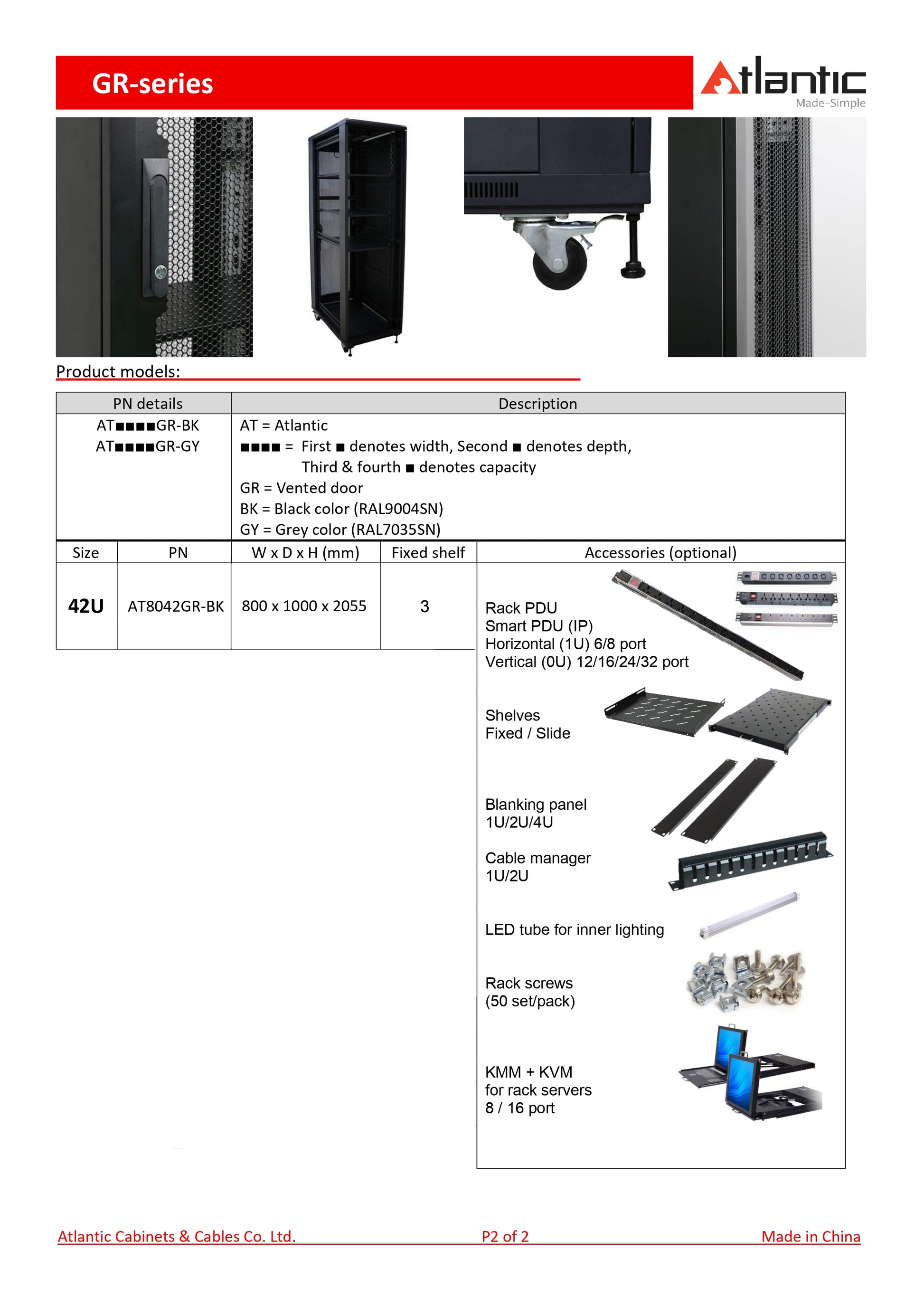 Atlantic خزانة سيرفر ٤٢U ١٠٠٠ كجم - عرض إضافي ٨٠ سم - عمق ١٠٠ سم - مع شبك تهوية