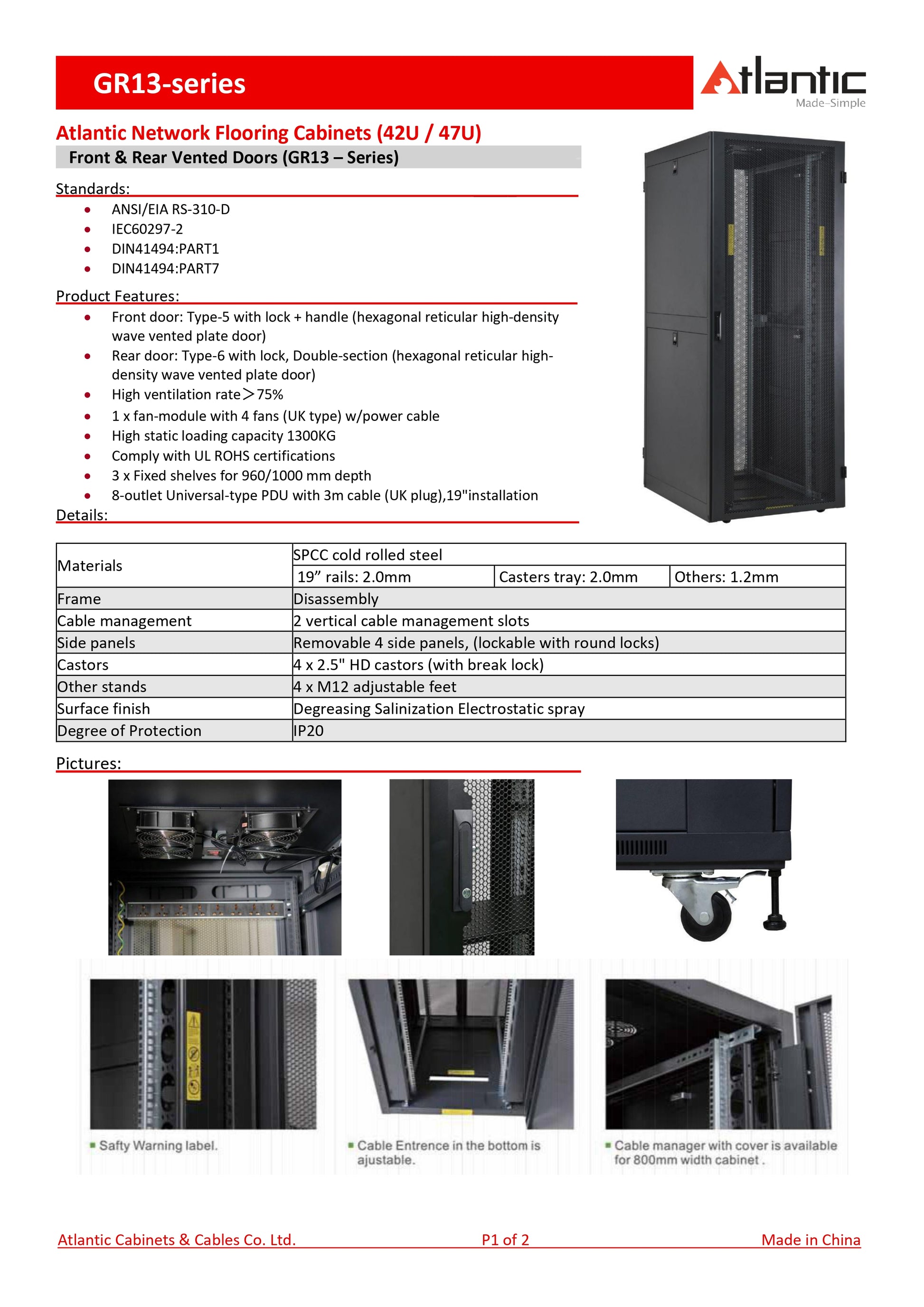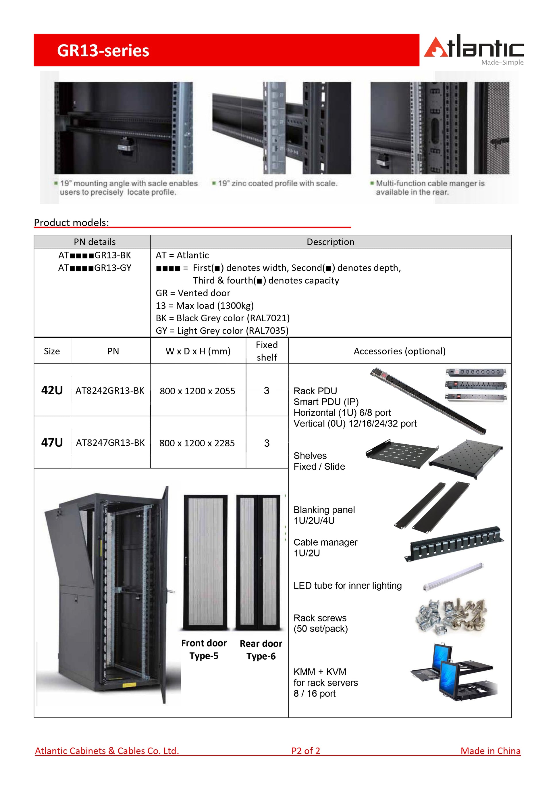 42U: خزانة خادم أتلانتيك 120x80x205 سم