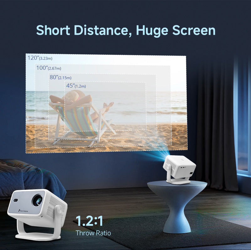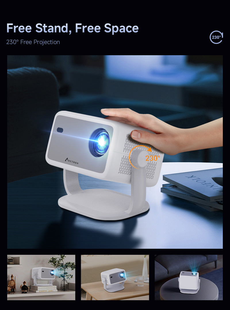 جهاز عرض Avetron LCD مقاس 3.5 بوصة - دقة 1080 بكسل أصلية، 250 لومن ANSI، نظام Android 11، دعم 4K، تركيز تلقائي، شاشة بحد أقصى 120 بوصة، مصباح LED، مكبر صوت مدمج 5 وات