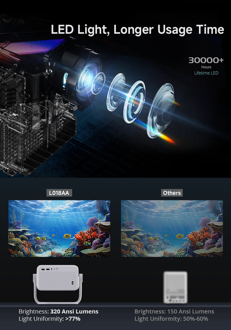 - نوع المصباح: LED مع عمر افتراضي يصل إلى 30000 ساعة