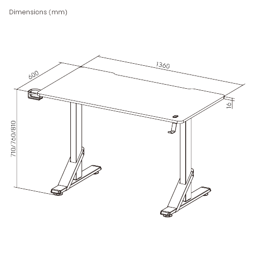 - Overall Dimensions (L × W × adjustable H): 1360 × 600 × 710/760/810 mm (53.5″ × 23.6″ × 28″ / 29.9″ / 31.9″)