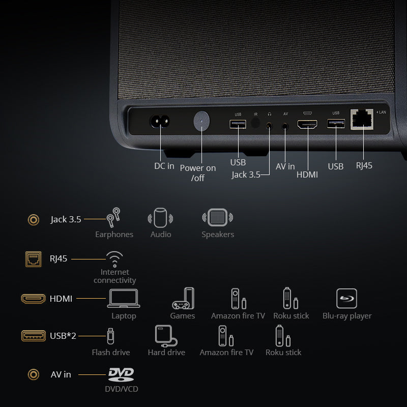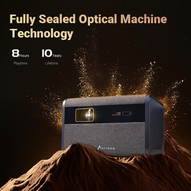 جهاز عرض Avetron Mini LED - دقة أصلية 1080 بكسل، 550 لومن ANSI، تركيز تلقائي، نظام Android 11، شاشة بحد أقصى 120 بوصة، مكبرات صوت مزدوجة 5 وات، دعم 4K