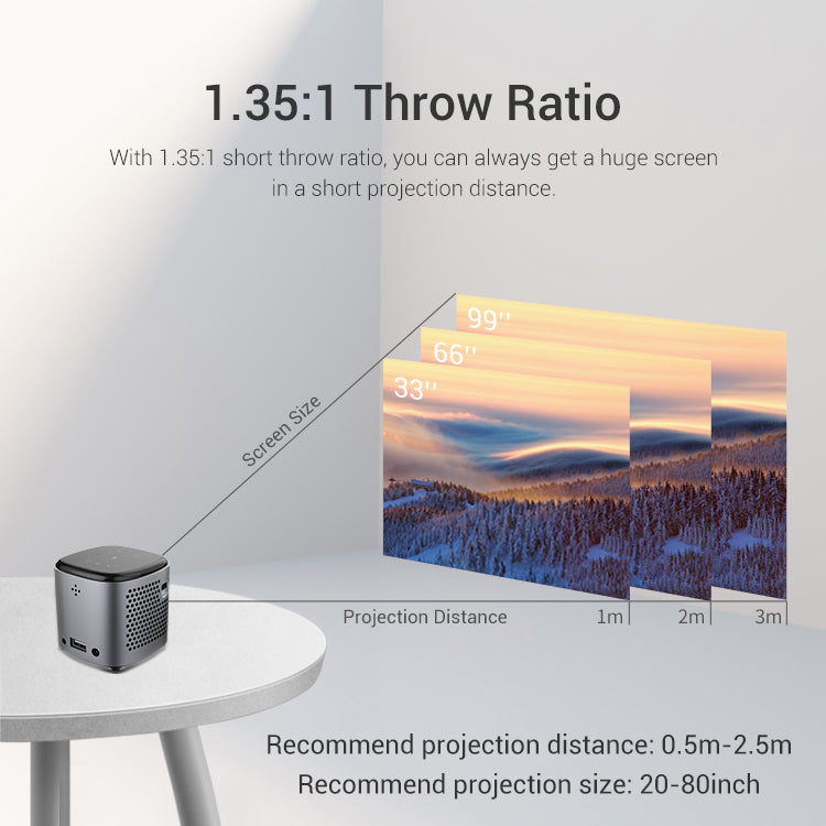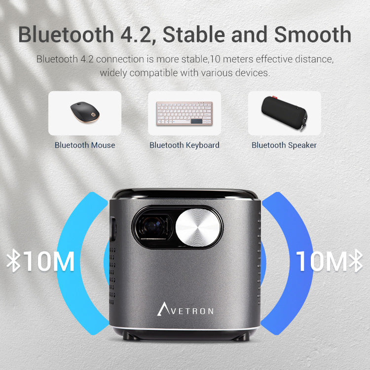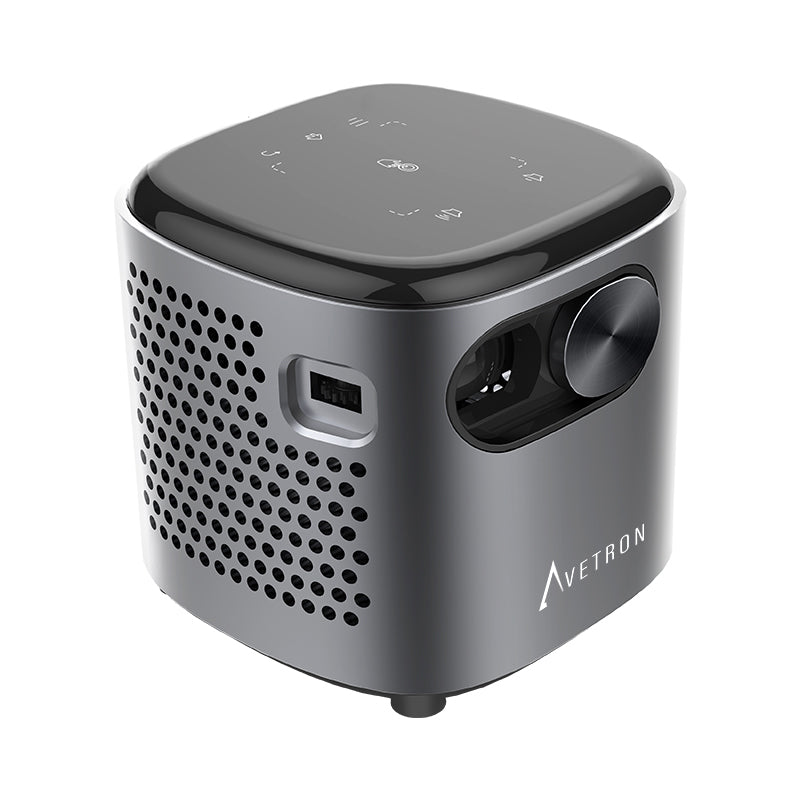 جهاز عرض Avetron المحمول بتقنية DLP - دقة 480 بكسل، سطوع 70 لومن ANSI، نظام Android 11، ذاكرة وصول عشوائي (RAM) سعة 1 جيجابايت + 32 جيجابايت، يدعم تقنية 1080 بكسل، واي فاي، بلوتوث، بطارية مدمجة
