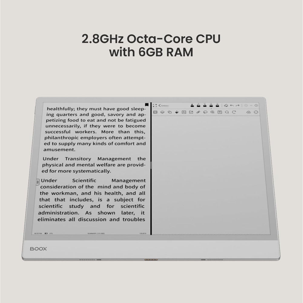 - Powerful Processor: 2.8GHz Qualcomm Octa-Core processor with BOOX Super Refresh (BSR) technology.