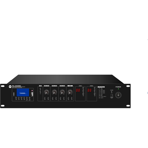 PA-2500MX هو مضخم صوت متعدد الاستخدامات ثنائي المنطقة، يدعم مخرجات 100 فولت و8 أوم في آنٍ واحد. من أهم ميزاته: