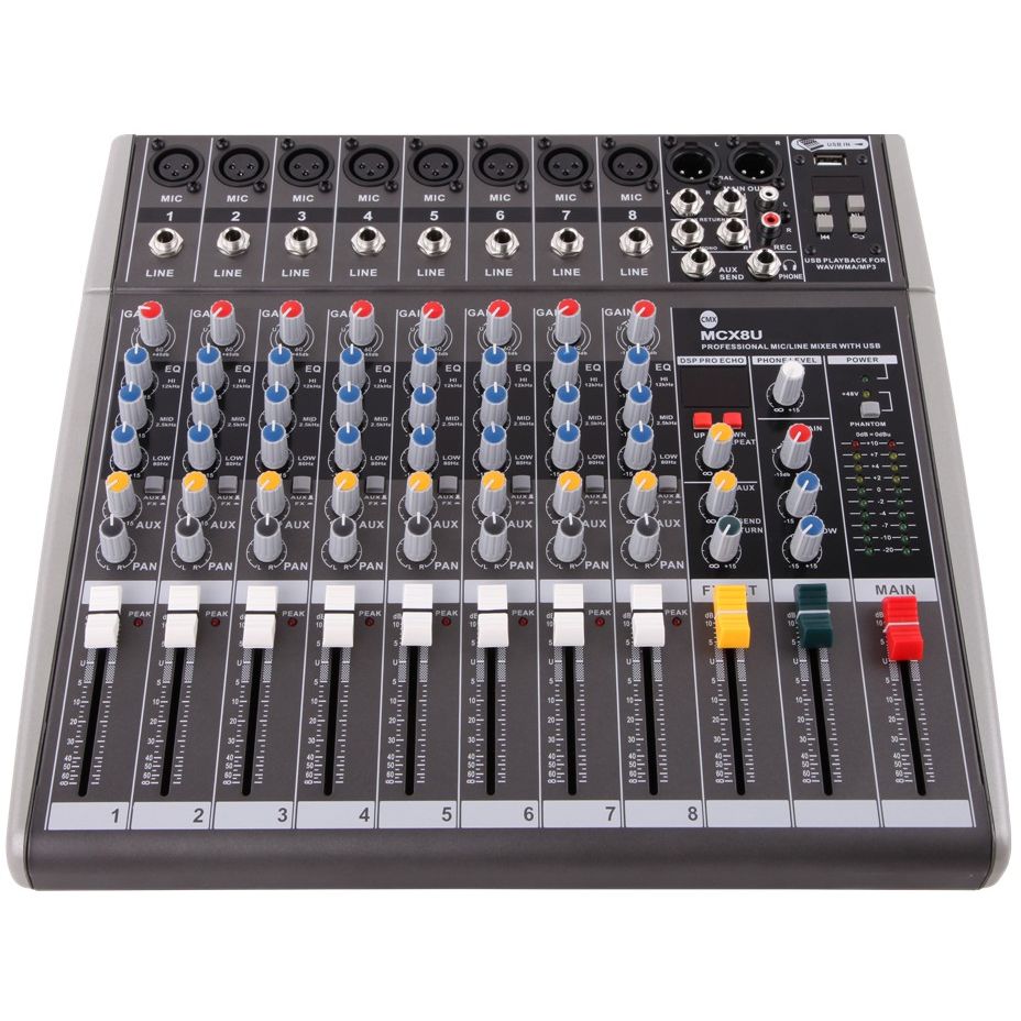 خلاط CMX 8 قنوات، مع USB/بلوتوث، 16 DSP، 3 نطاقات EQ، طاقة فانتوم 48 فولت، مخرج ستيريو