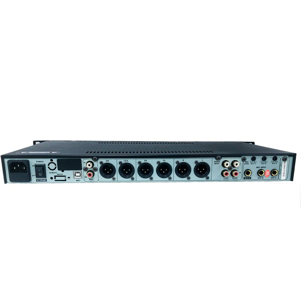 معالج كاريوكي عالي الدقة مع شريحة معالجة رقمية متطورة لصوت نقي. يتميز بمعادل صوت بـ ١٥ نطاقًا، ومعالجة مجال صوتي، ومخرج صوت مرن ٥.١ قناة للمناسبات الاحترافية.