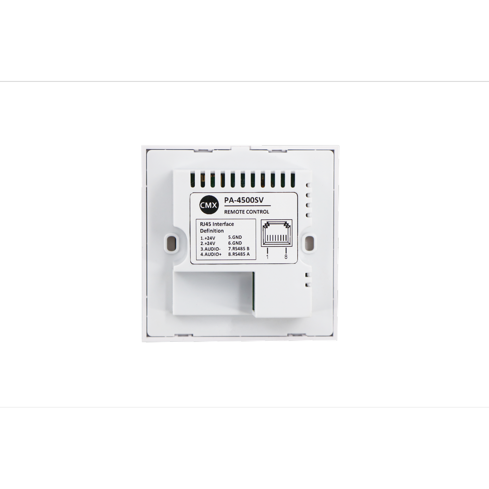 جهاز تحكم عن بعد CMX مثبت في الحائط لمكبرات الصوت من سلسلة PA-4500MX، مع التحكم في مستوى الصوت والإدخال، وبلوتوث مدمج، ومعيار CAT6 حتى 999 متر