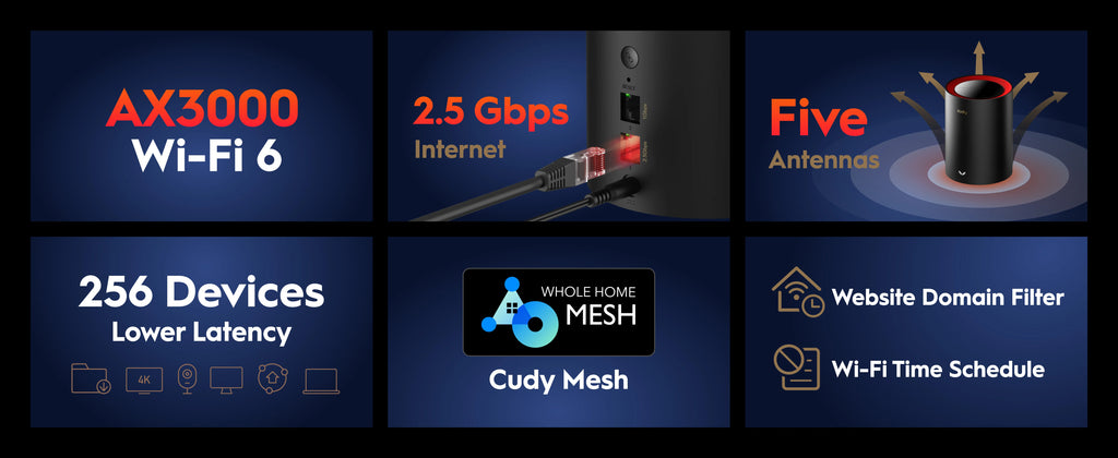 AX3000 Dual-Band Performance: 2402Mbps on 5GHz + 574Mbps on 2.4GHz for ultra-fast wireless speeds.