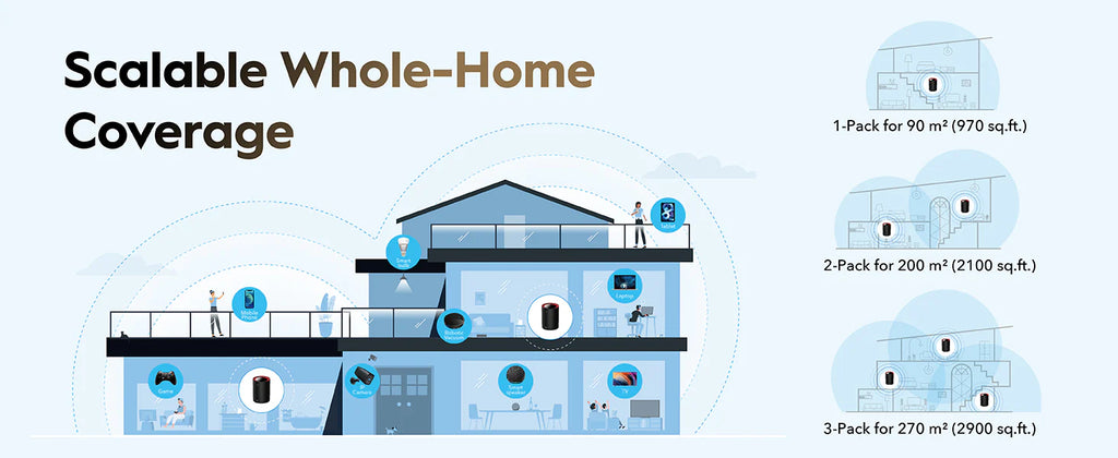 Whole-Home Wi-Fi, Multi-Floor Houses, Large Apartments, Small Offices |