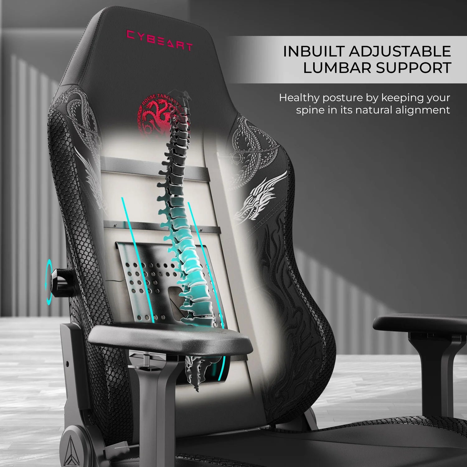 سايبيرت | كرسي ألعاب هاوس تارجاريان - دي سي كوميكس | مسند ذراع رباعي الأبعاد | دعم قطني مدمج | جلد بولي يوريثان فاخر، مريح، قابل للإمالة والانحناء