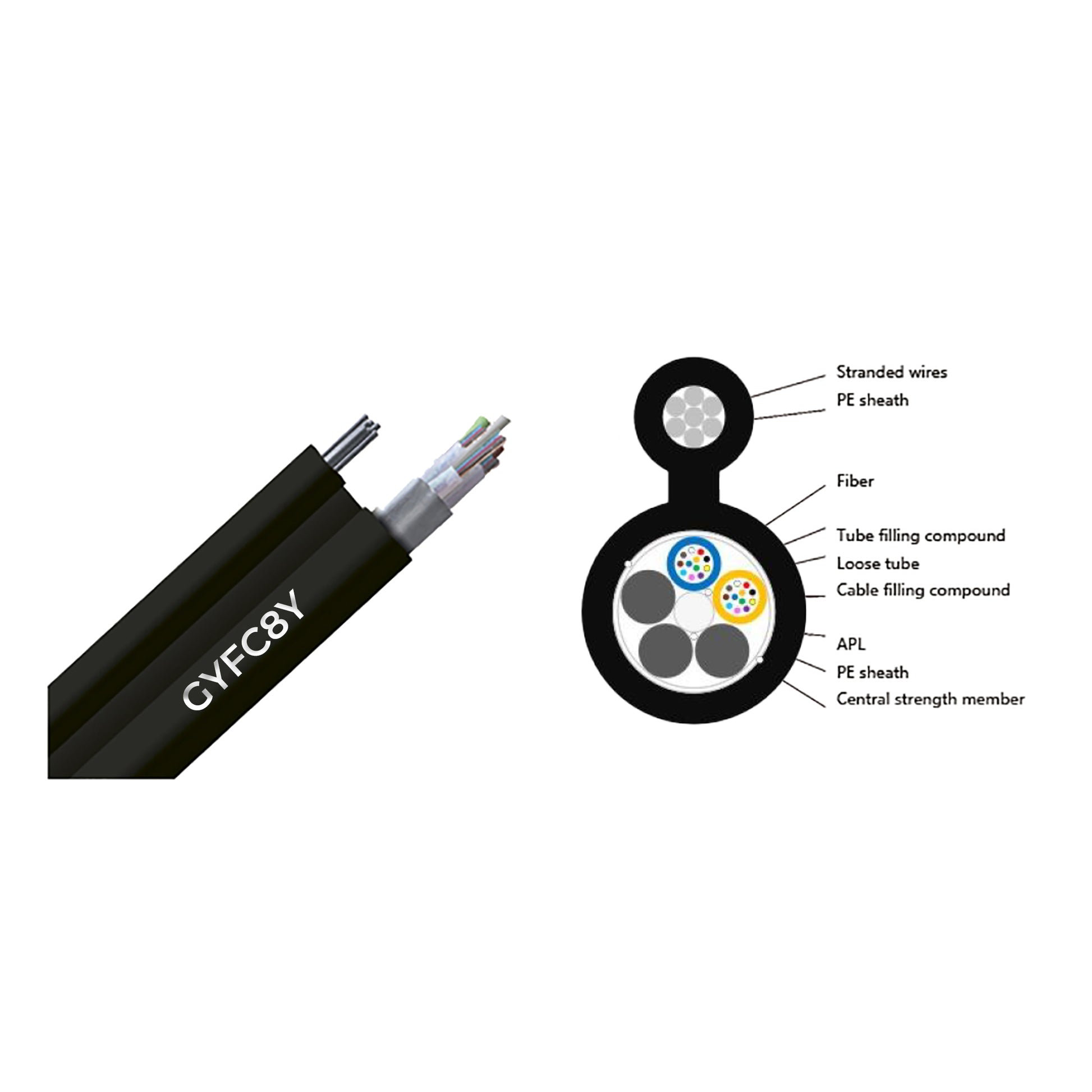 - الشكل 8 كابل الألياف الضوئية متوفر في خيارات قلب 24F