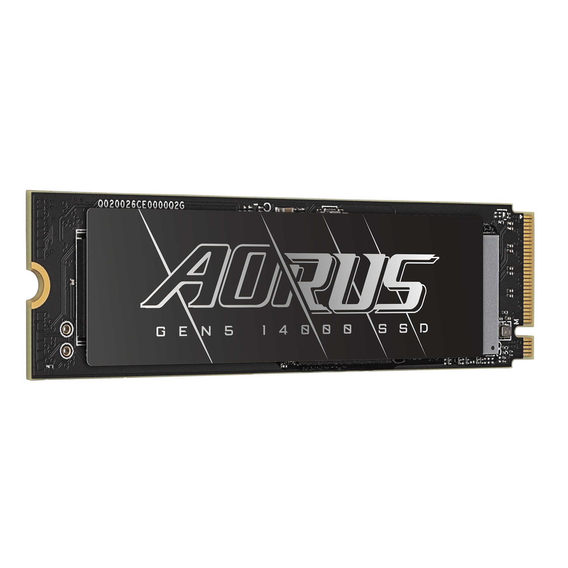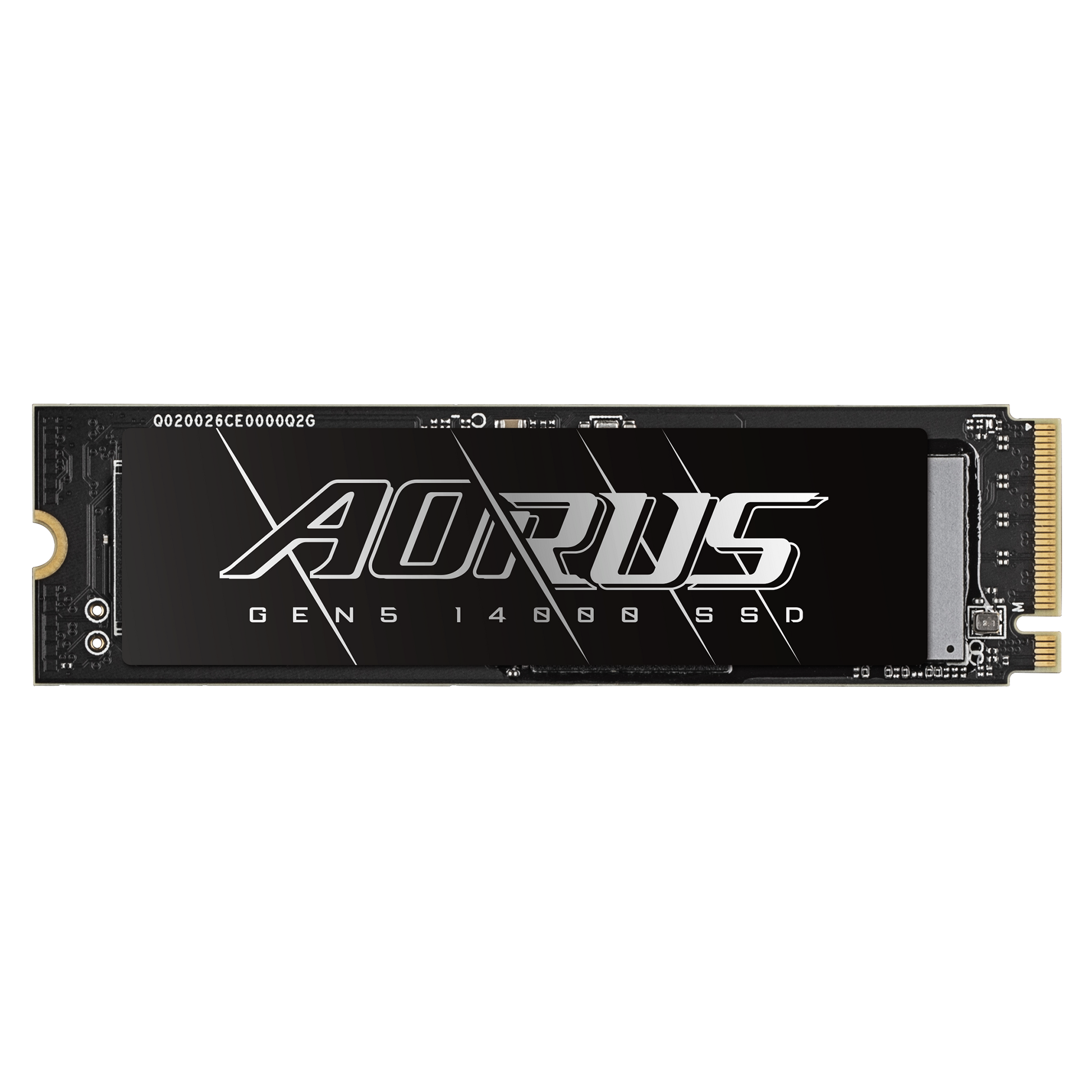 قرص تخزين SSD Gigabyte AORUS Gen5 14000 سعة 2 تيرابايت - PCIe 5.0 M.2 NVMe 2.0، سرعة قراءة 14,500 ميجابايت/ثانية، سرعة كتابة 12,700 ميجابايت/ثانية، ذاكرة NAND ثلاثية الأبعاد TLC مكونة من 232 طبقة