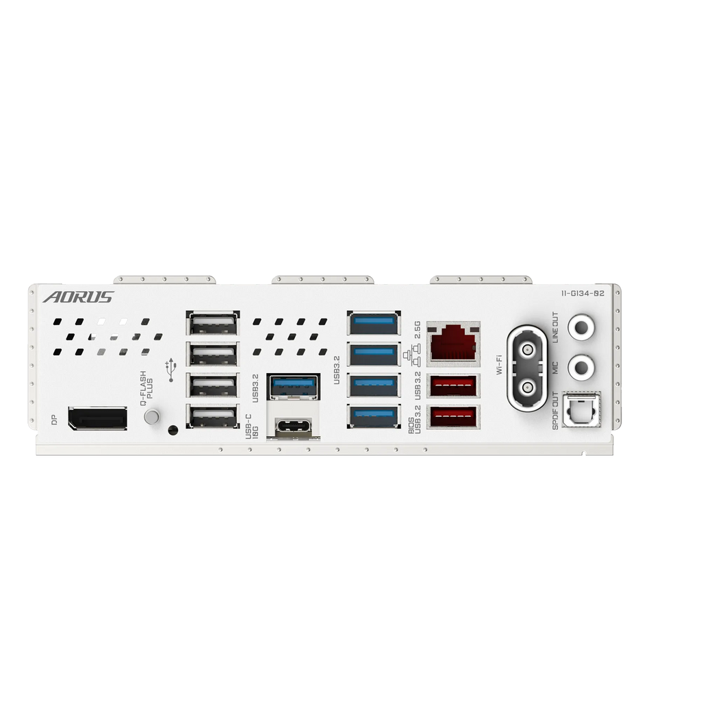 مدخلات ومخرجات شاملة: منفذ USB-C أمامي بسرعة 20 جيجابت في الثانية، ومنفذ USB 3.2 من الجيل الثاني والجيل الأول، ومنفذ USB 2.0، ومنفذ DisplayPort، ومنفذ HDMI، ومنفذ Q-Flash Plus