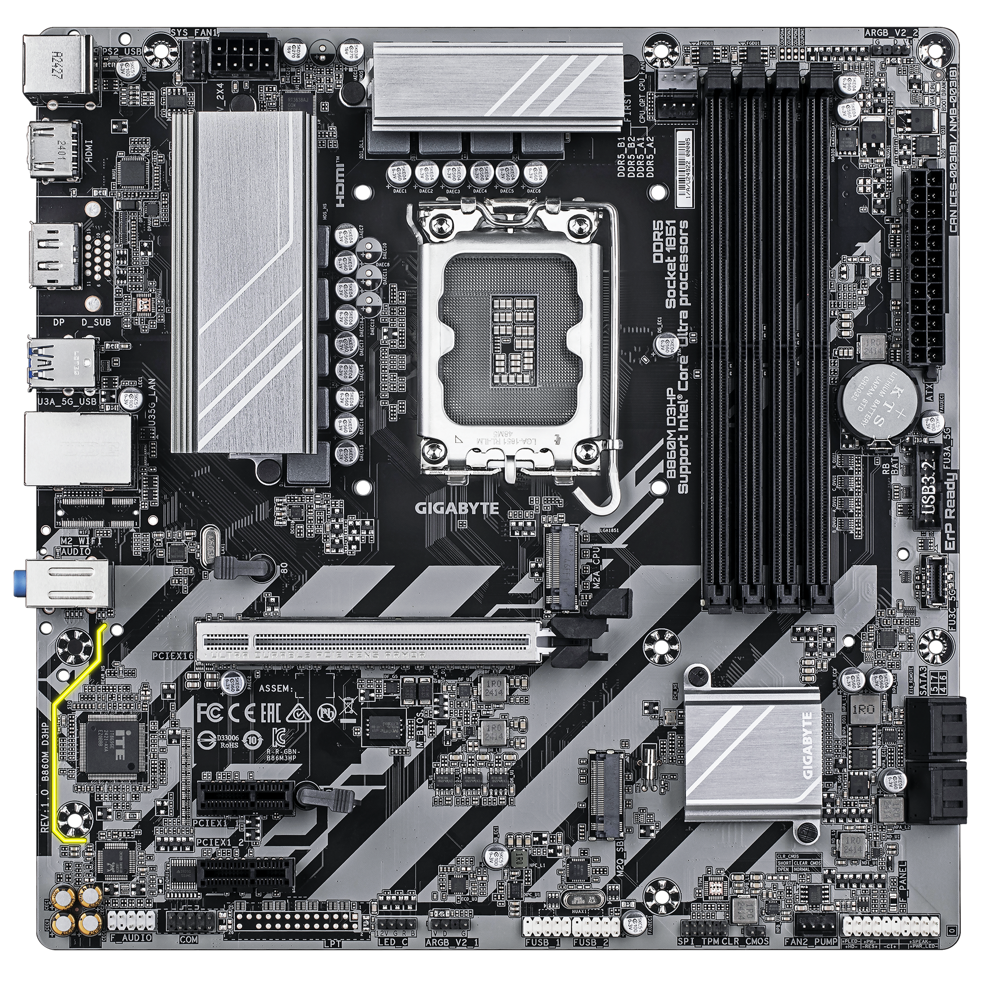 لوحة أم Gigabyte B860M D3HP mATX - LGA 1851، DDR5 حتى 9,066 MT/s (OC)، PCIe 5.0، USB‑C Gen1، Gigabit LAN وBIOS مُدار بالذكاء الاصطناعي