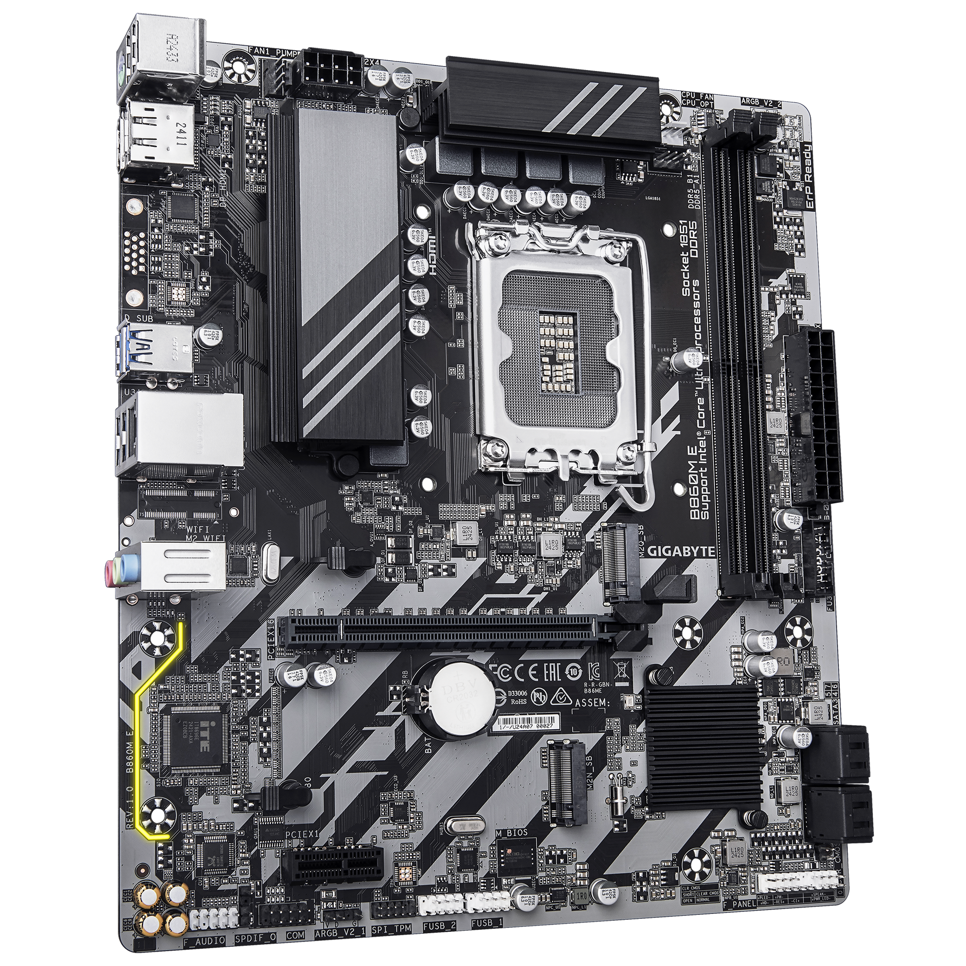 لوحة أم Gigabyte B860M E mATX - LGA 1851 (Intel Core Ultra 2)، DDR5 حتى 9,066 MT/s OC، PCIe 5.0 و PCIe 4.0 M.2، 2.5 GbE، HDMI/DP