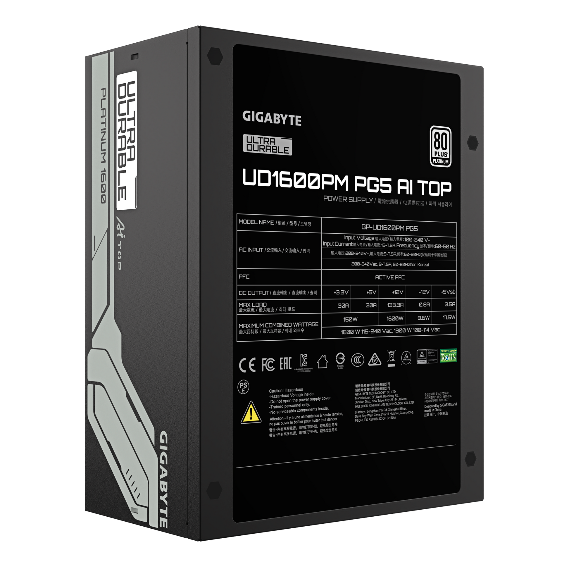 وحدة تزويد الطاقة GIGABYTE GP-UD1600PM PG5 AI TOP - 1600 واط، ATX 3.1، PCIe Gen5 جاهزة، بلاتينيوم 80+، وحدات كاملة