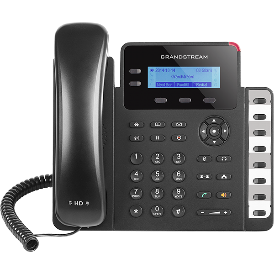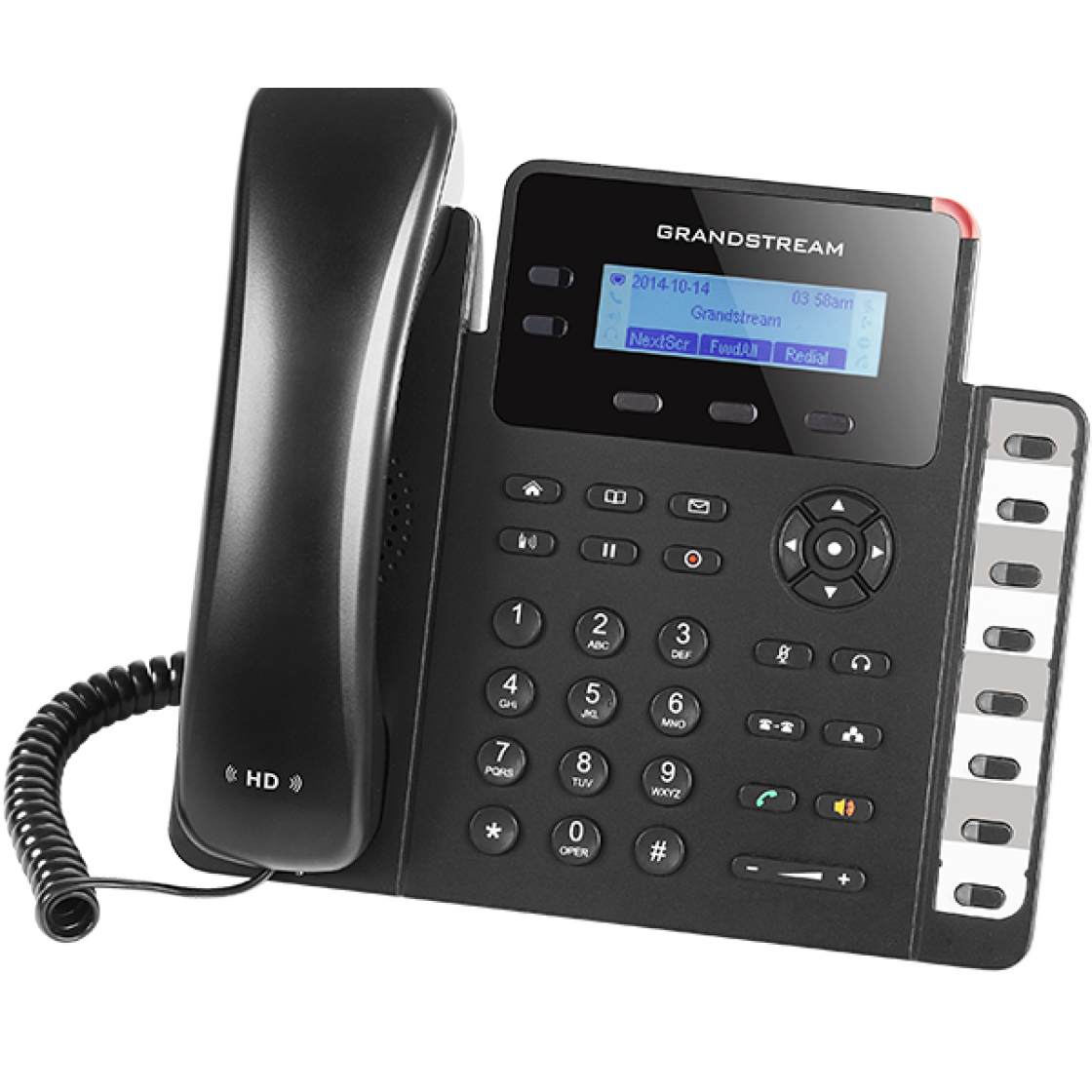 هاتف Grandstream GXP1628 IP مع خطي SIP، دعم PoE، منفذين جيجابت، شاشة LCD بإضاءة خلفية 132x48 وصوت عالي الدقة