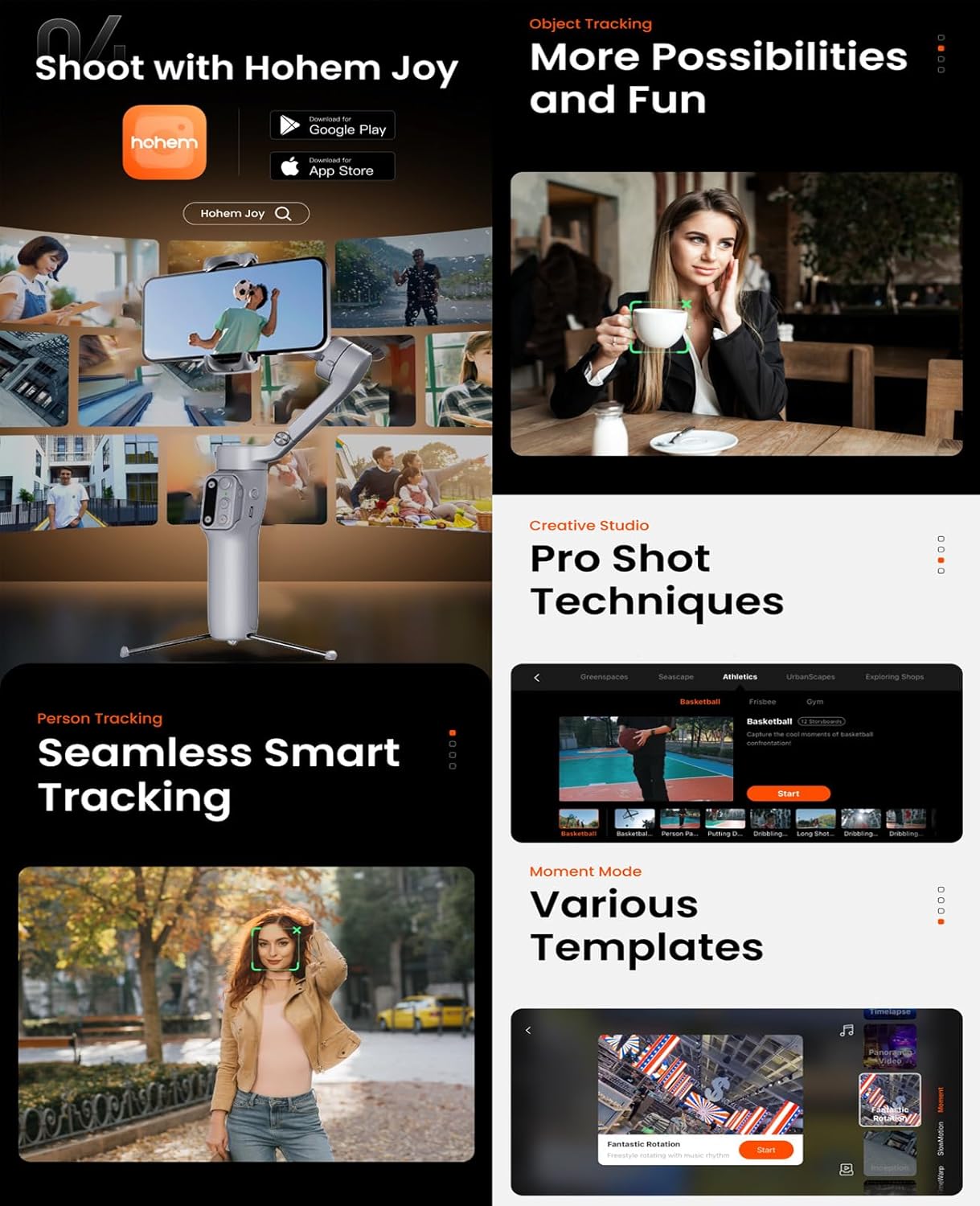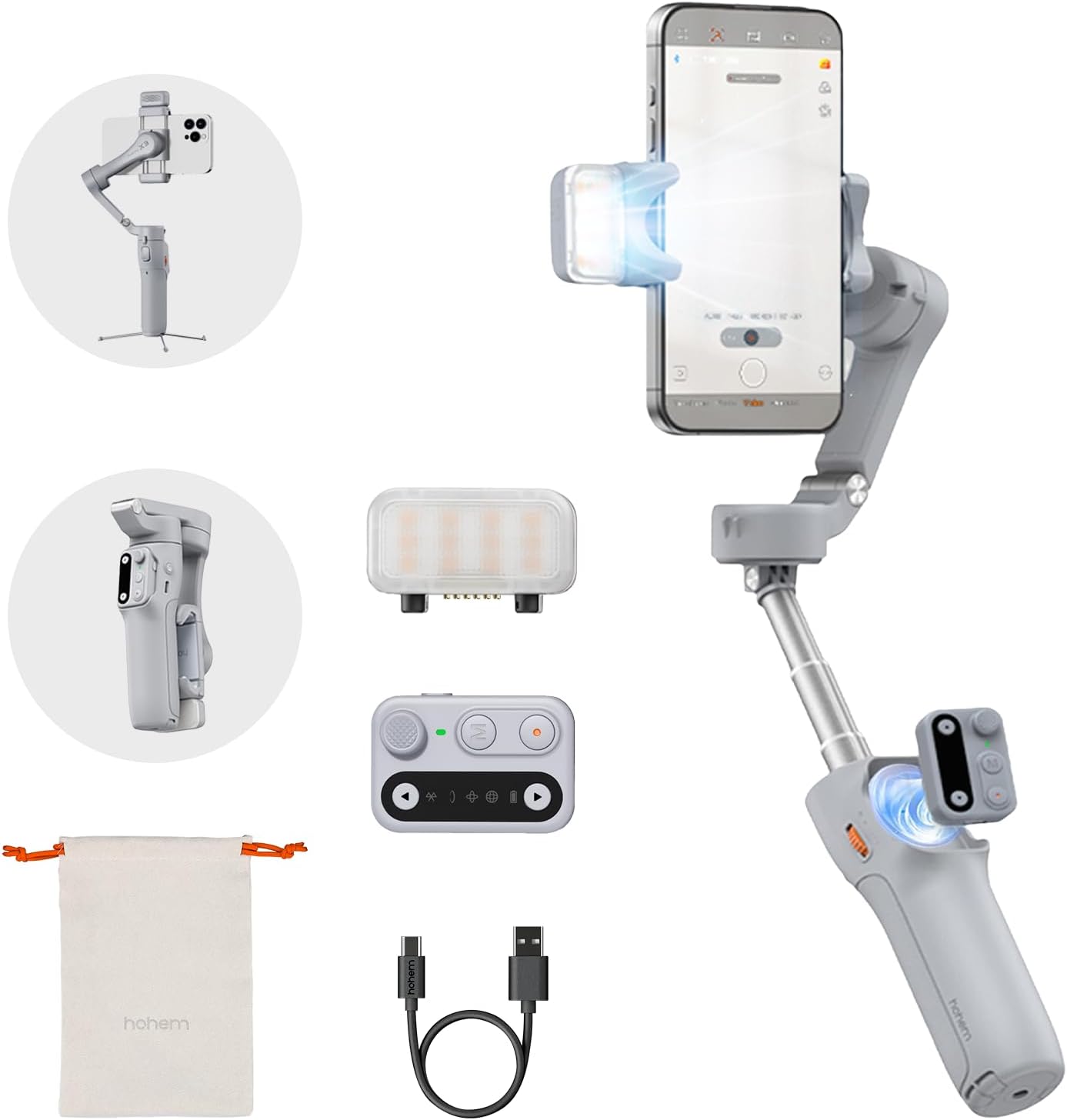 Hohem iSteady X3 مثبت هاتف ذكي للسفر بثلاثة محاور – قابل للطي، جهاز تحكم عن بعد قابل للفصل، إضاءة تعبئة مغناطيسية، عصا قابلة للتمديد، بطارية تدوم 11 ساعة