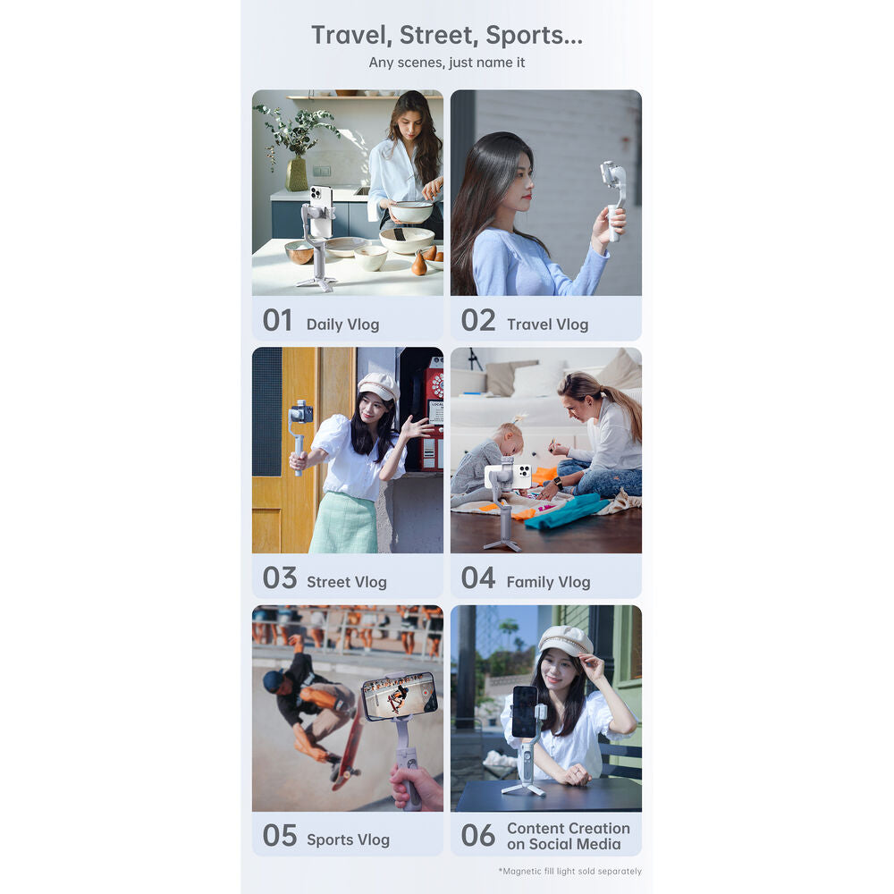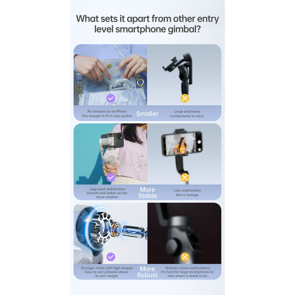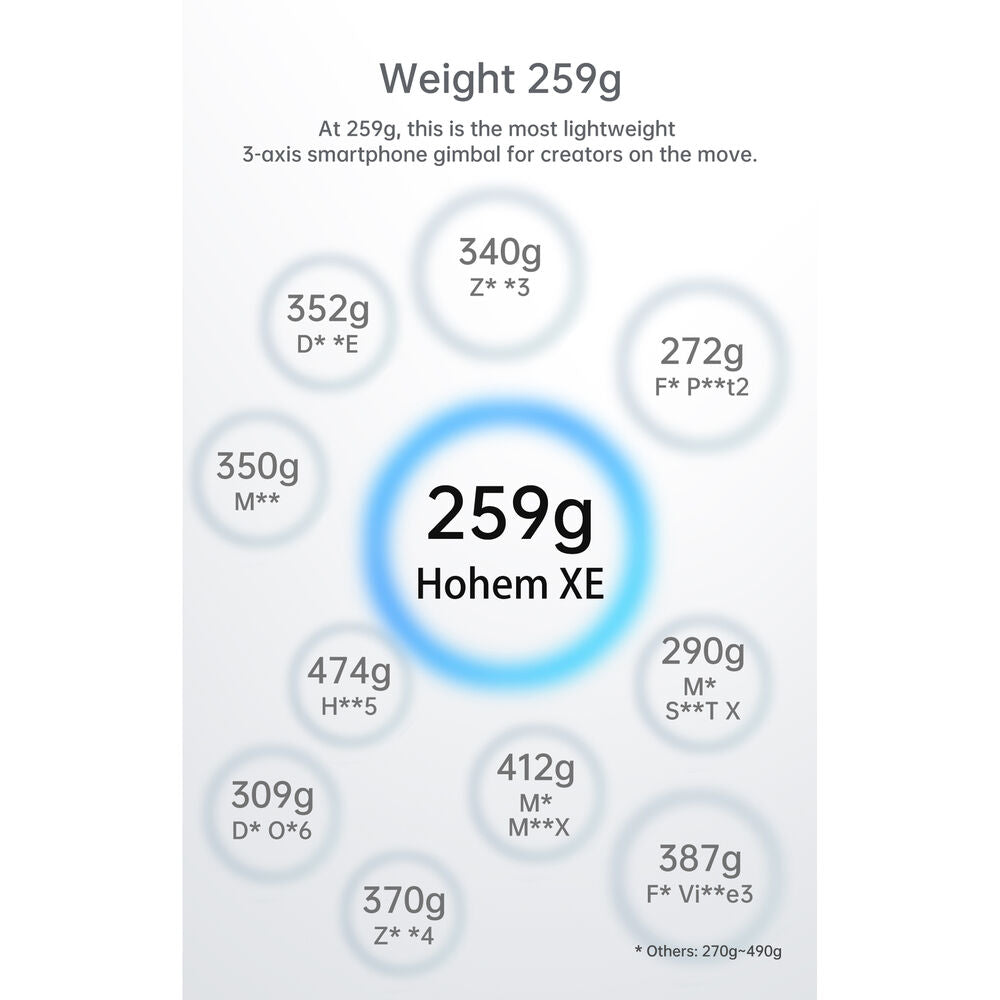 - وزن أخف: بوزن 259 جرامًا، يعد هذا أخف مثبت ثلاثي المحاور للهواتف الذكية للمبدعين أثناء التنقل.