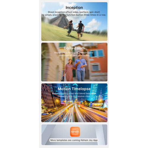 - تحكم مُبسَّط: يمكنك التبديل بسرعة بين الوضع الأفقي والرأسي بالضغط على زر الوظيفة مرة واحدة، والتبديل بسرعة بين أوضاع المحور (PF/PTF/L/POV) بالضغط على زر M مرة واحدة، وتفعيل وضع البداية (التصوير الدوراني) بالضغط على زر الوظيفة ثلاث مرات. كما يمكن التحكم في محور Hohem iSteady XE عن بُعد .