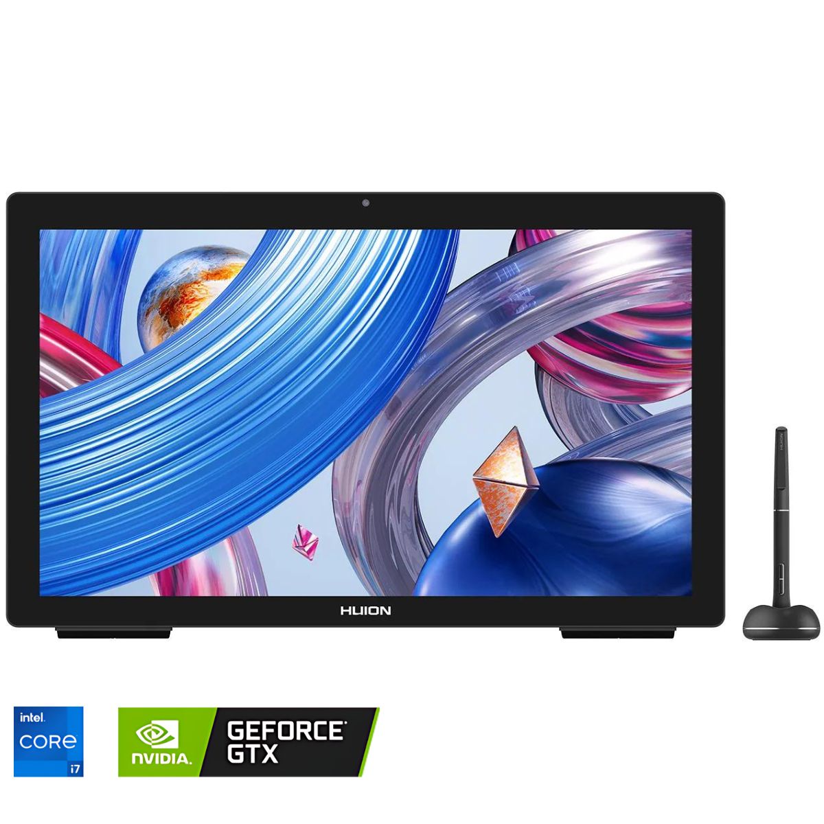 HUION Kamvas Studio 24 - كمبيوتر قلم 23.8 بوصة 2.5K QHD مزود بمعالج Intel Core i7 وذاكرة الوصول العشوائي 32 جيجابايت و1 تيرابايت SSD وNvidia GTX 1650 وحامل قابل للتعديل للفن والتصميم الرقمي الاحترافي