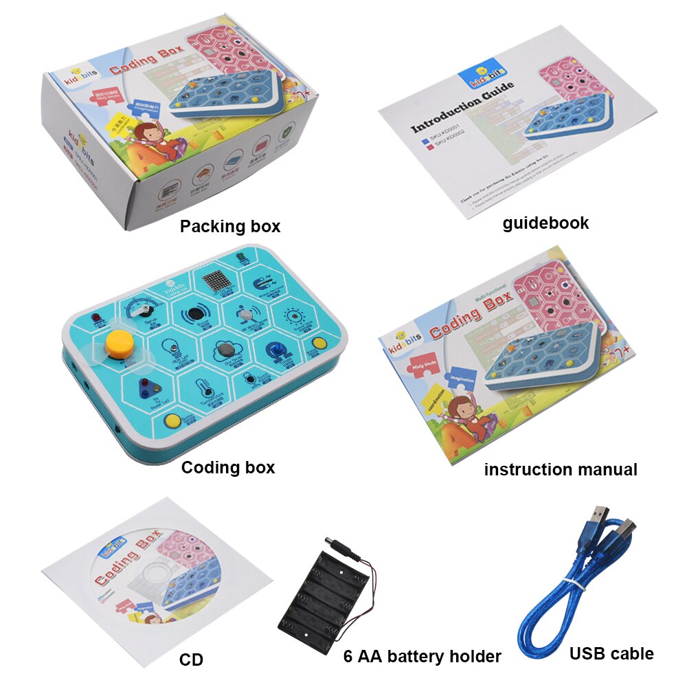 Keyestudio Kidsbits Maker Coding Box V1.0 – مجموعة بداية STEM معتمدة على Arduino مع أكثر من 25 مكونًا ودعم البرمجة المرئية