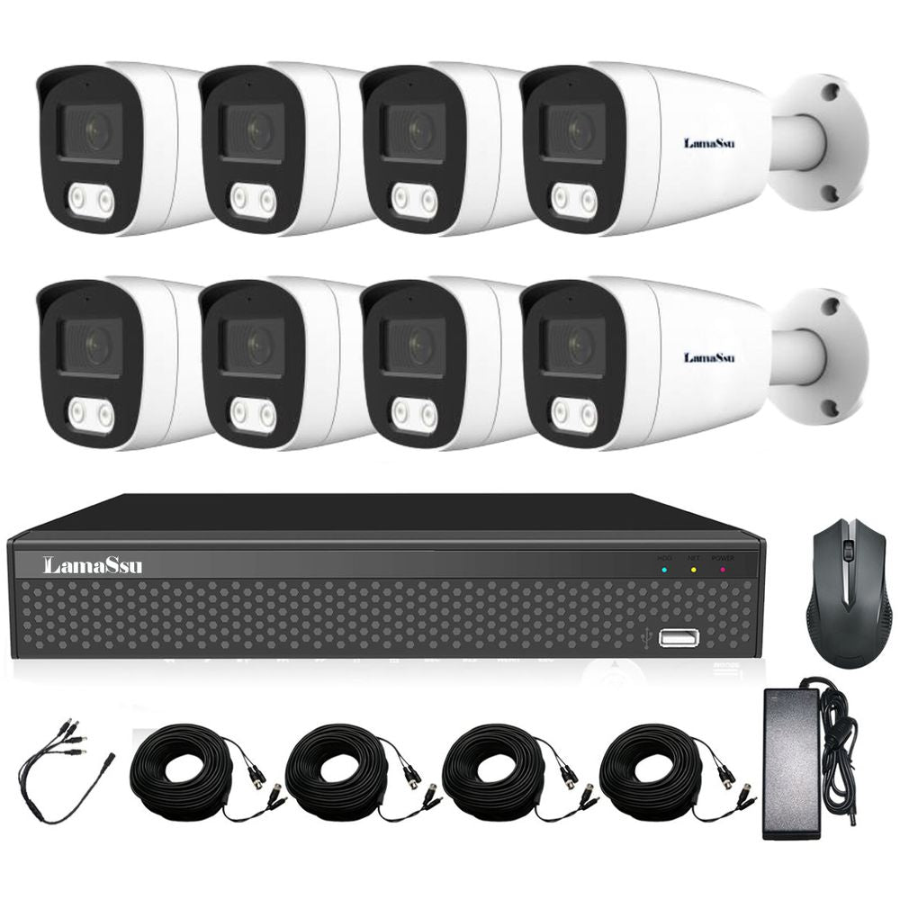 مجموعة كاميرا LAMASSU 8CH 5MP كاملة الألوان مع XVR، رؤية ليلية، تسجيل H.265+، مقاومة للعوامل الجوية IP67، عرض عن بُعد، بدون قرص صلب