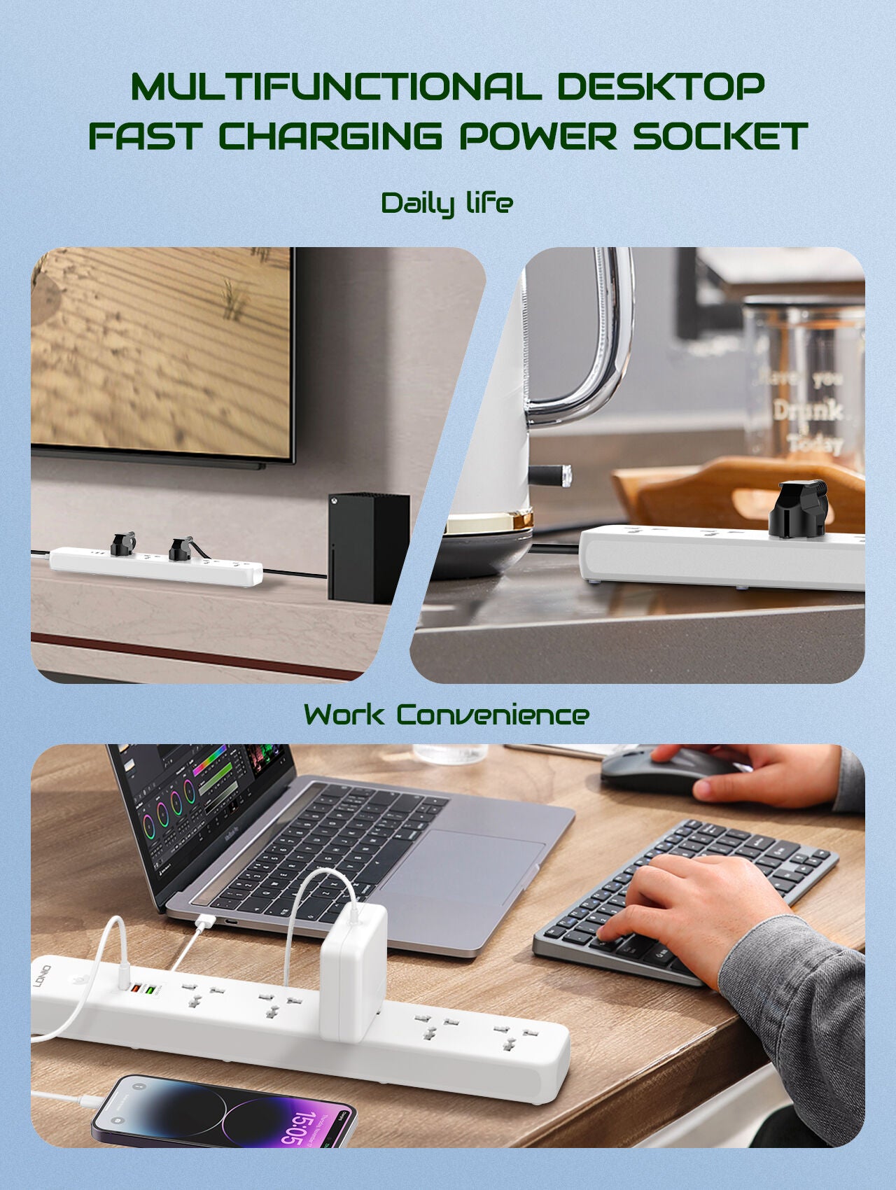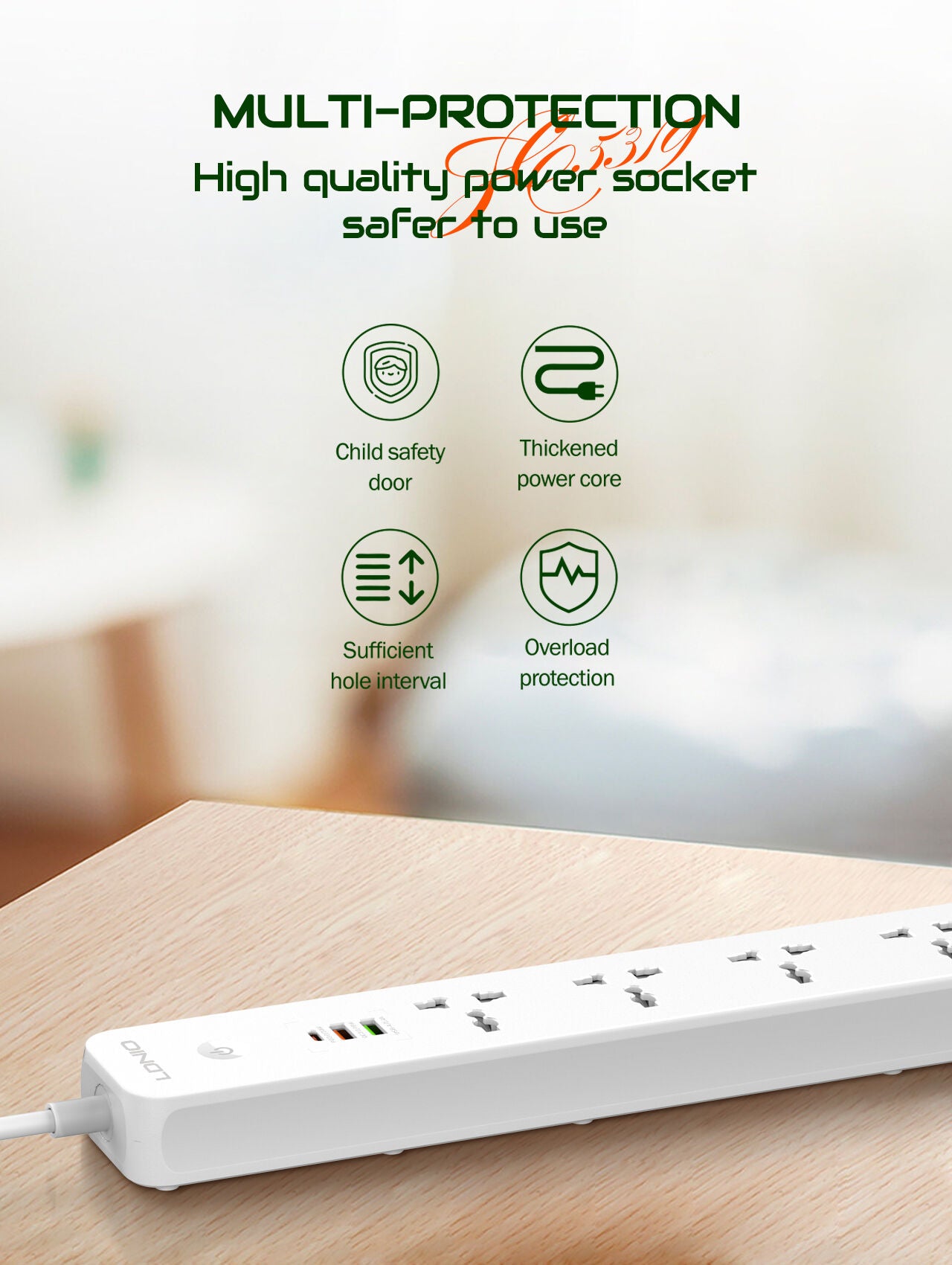 كابل تمديد متعدد المنافذ SC5319 من LDNIO مزود بـ 5 مقابس طاقة تيار متردد و3 منافذ USB بطول 2 متر