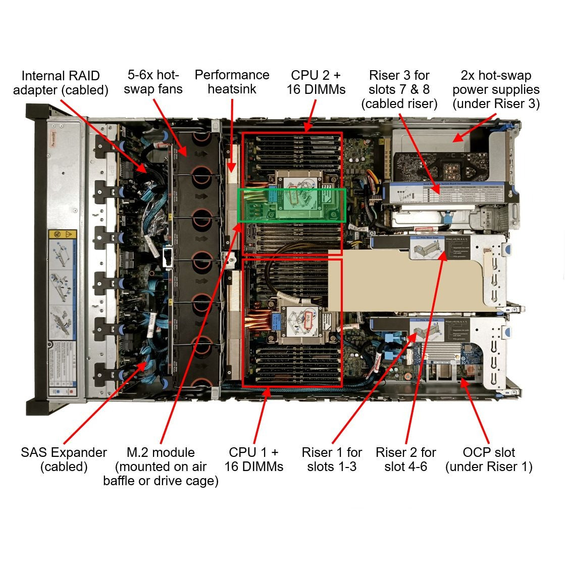 - تخزين عالي السرعة: يتضمن 2× 960 جيجابايت SSD لنظام التشغيل/التطبيقات و2× 2.4 تيرابايت أقراص SAS لتخزين البيانات بسعة كبيرة.
