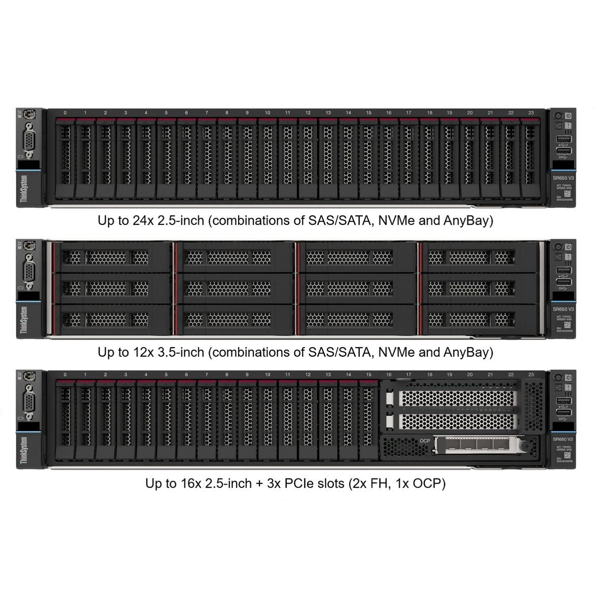 | حجرات القيادة | Up to 24× 2.5" bays (SAS/SATA/NVMe), with 4 or 8 AnyBay options |