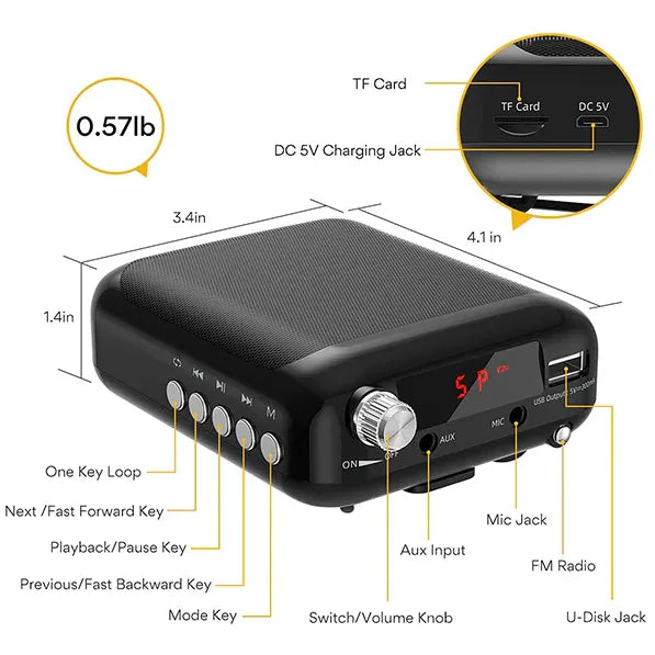 Powerful Sound Output: 10W high-quality speaker delivers loud and clear audio for audiences up to 100 people.