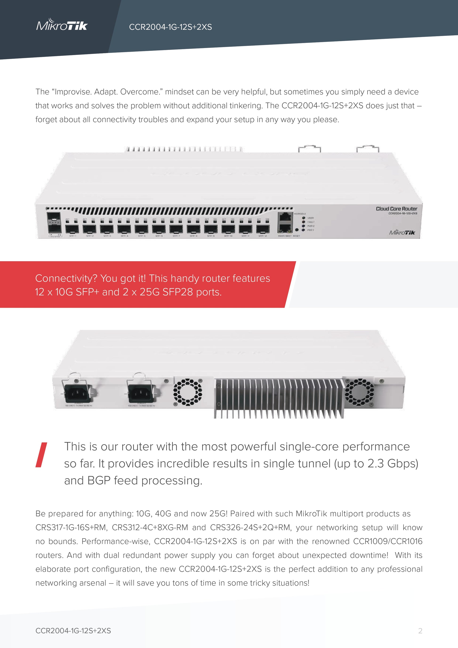 بفضل تكوين المنفذ المعقد، يعد جهاز CCR2004-1G-12S+2XS الجديد الإضافة المثالية لأي ترسانة شبكات احترافية - وسوف يوفر لك الكثير من الوقت في بعض المواقف الصعبة!