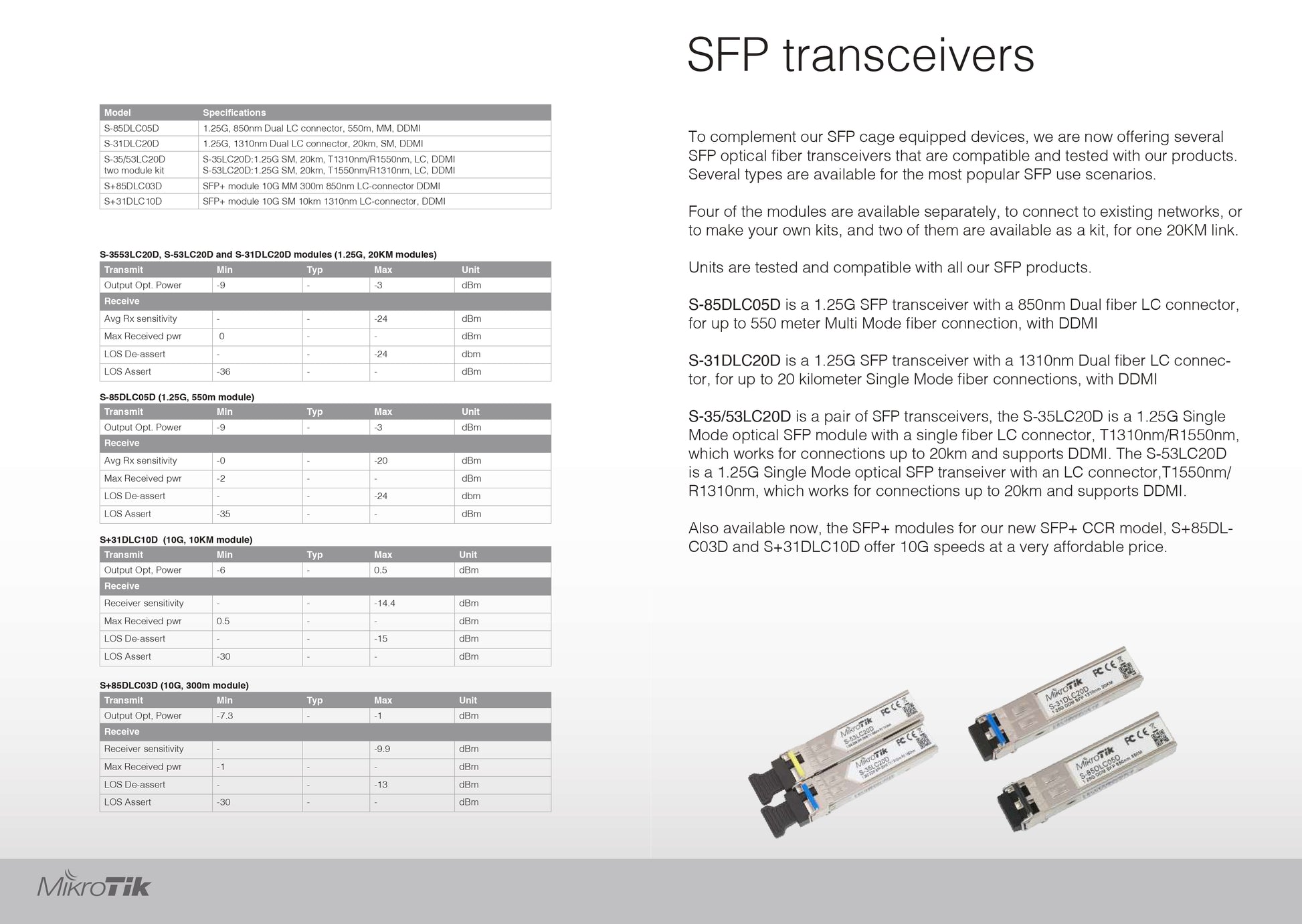 - متوافق تمامًا مع الأجهزة الممكّنة بتقنية MikroTik SFP