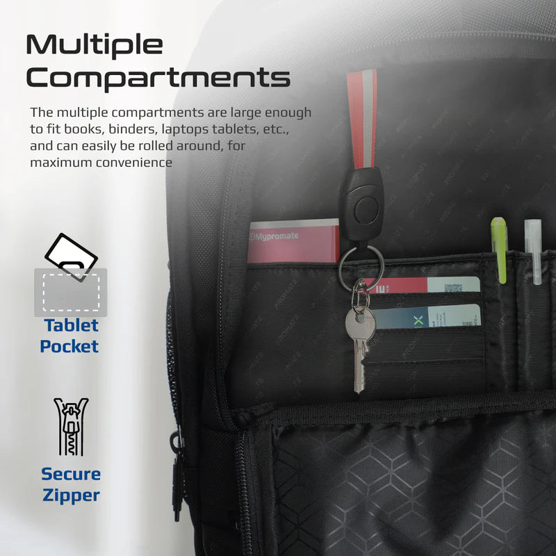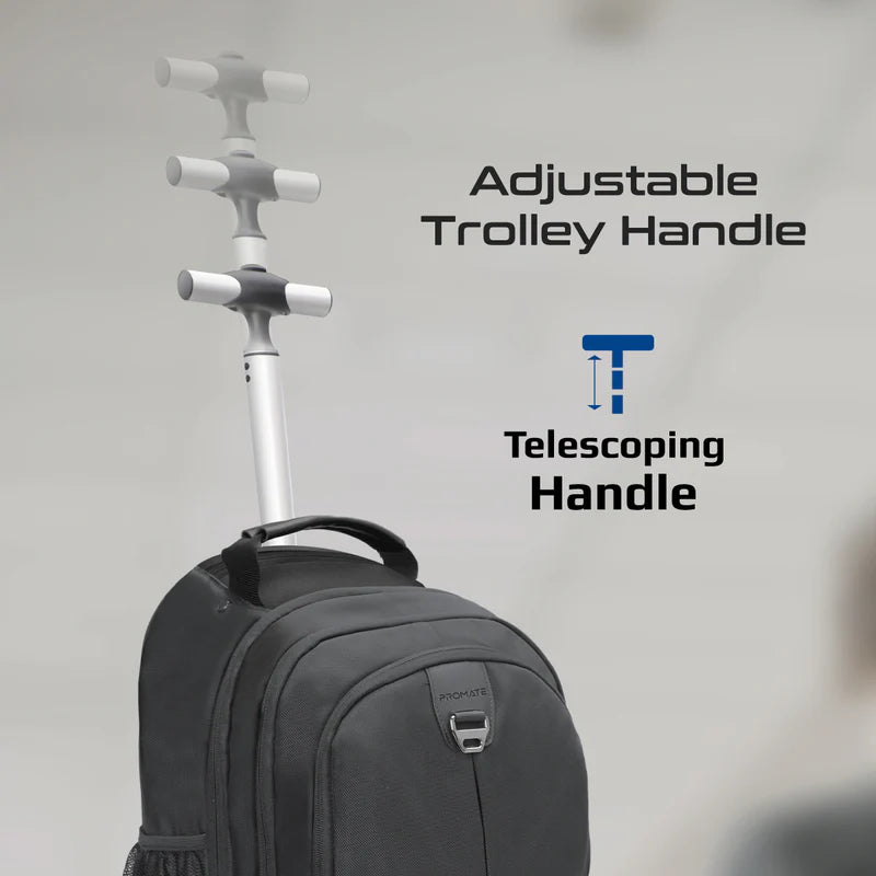 حقيبة بروميت بعجلات ذات سعة كبيرة مع حجرات متعددة لأجهزة الكمبيوتر المحمول مقاس 15.6 بوصة