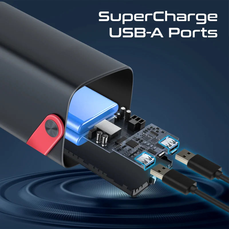 - USB-A1 (QC 3.0): حتى ٢٢٫٥ واط (٥ فولت/٤٫٥ أمبير، ٩ فولت/٢ أمبير، ١٢ فولت/١٫٥ أمبير)