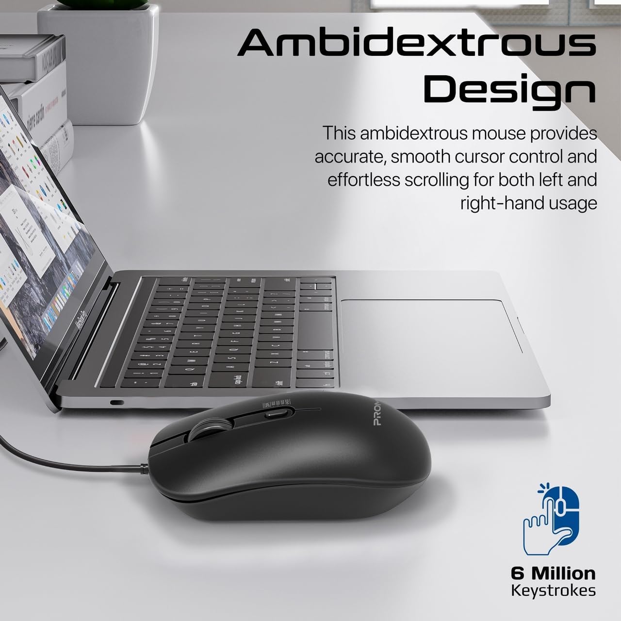 بروميت ماوس سلكي مع 6 مليون ضغطة مفتاح، 2400 نقطة في البوصة قابلة للتعديل، 4 أزرار قابلة للبرمجة، سلك 1.5 متر وقبضة مضادة للانزلاق