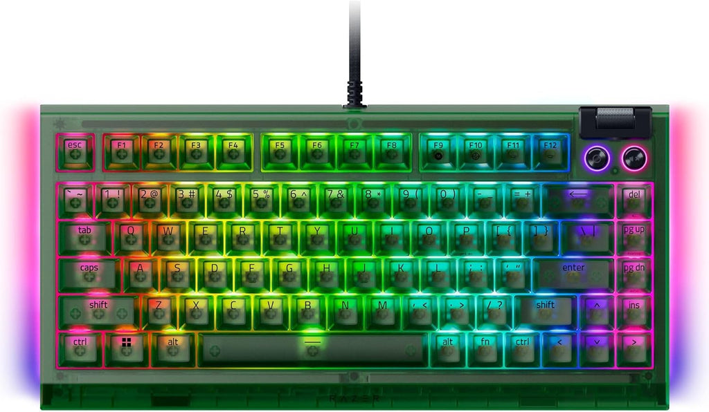 Razer BlackWidow V4 75% Phantom Green Editon - Hot-swappable Mechanical Gaming Keyboard (Orange Tactile Switches, media roller with 2 dedicated media buttons) US Layout