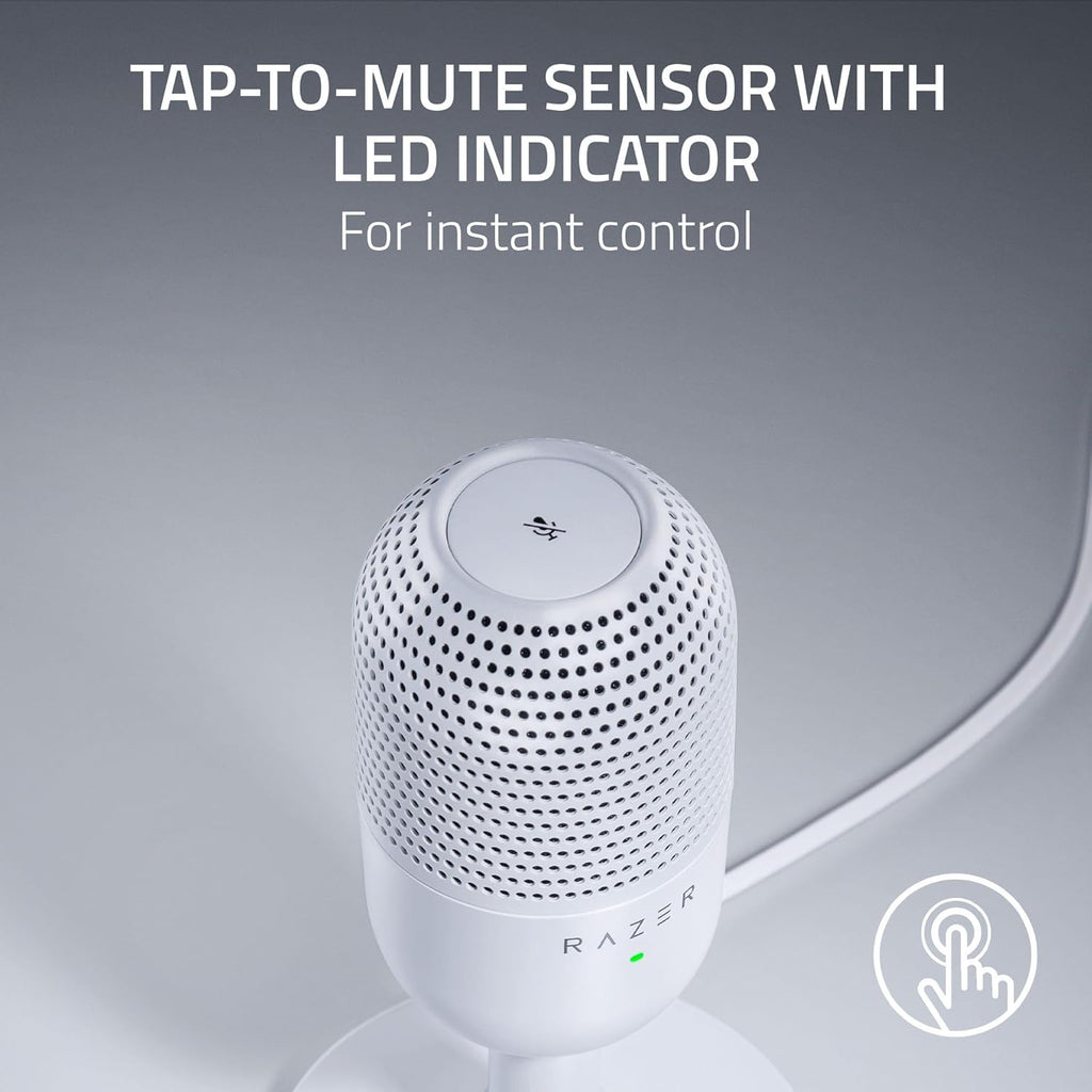 مستشعر كتم الصوت بلمسة واحدة مع مؤشر LED — سواء كنت تلعب أو تتحدث أو تبث، يمكنك منع حدوث أي مشاكل صوتية على الفور بمجرد النقر على الجزء العلوي من الميكروفون، وإخبارك في لمحة واحدة إذا كان الميكروفون نشطًا أم لا باستخدام مؤشر حالة LED