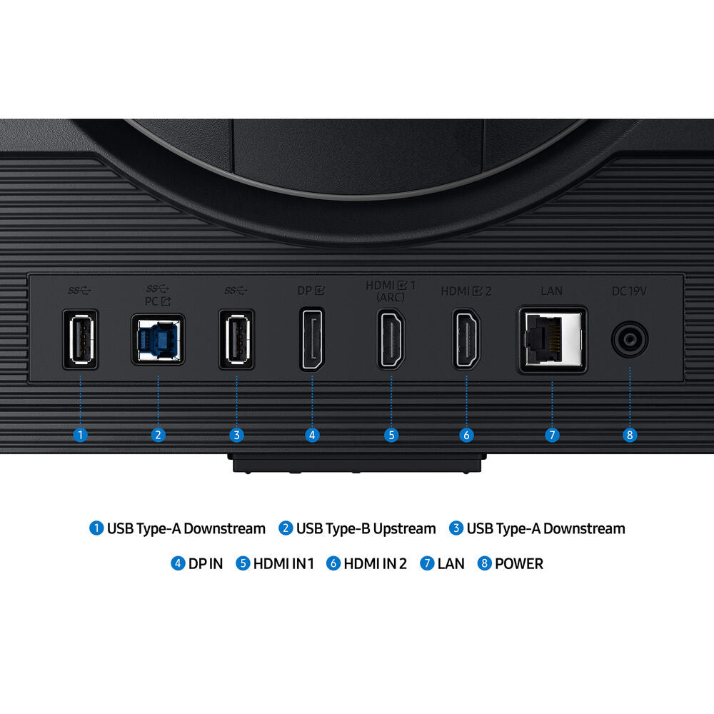 موزع USB : يسمح لك موزع USB المدمج بتوصيل الأجهزة الطرفية مثل الماوس أو لوحة المفاتيح أو سماعة الرأس مباشرة بالشاشة.