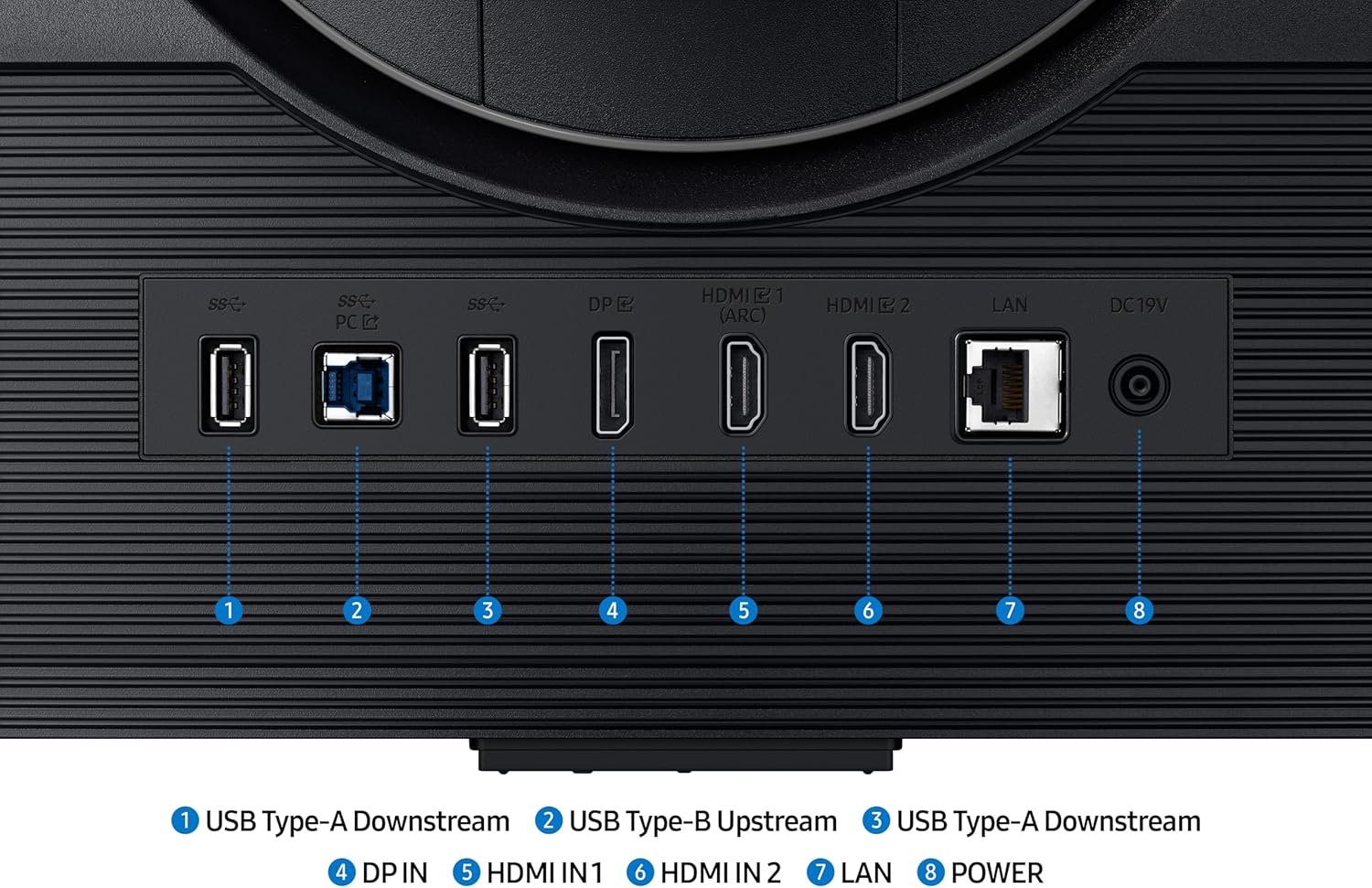 - الاتصال: 2 × HDMI 2.1، 1 × DisplayPort 1.4، موزع USB، مقبس صوت 3.5 ملم