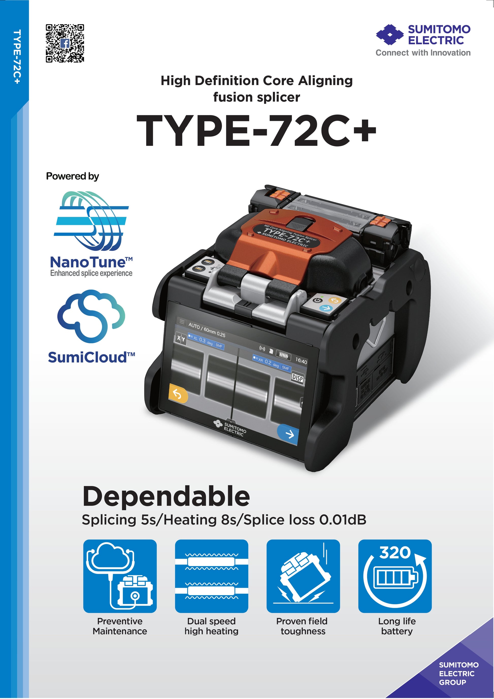 جهاز لحام الألياف البصرية عالي الدقة Sumitomo Electric TYPE-72C+ مع فرنين، شاشة لمس، تعريف ألياف أوتوماتيكي، واتصال SumiCloud