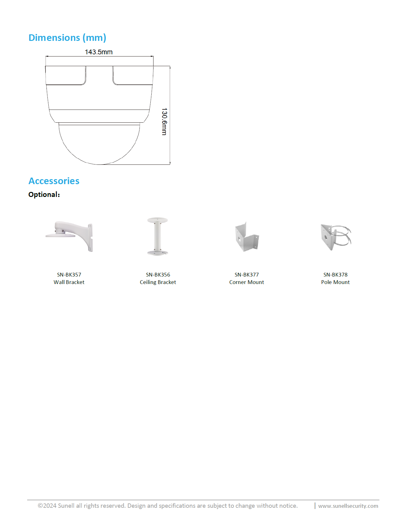 - الإضاءة: الأشعة تحت الحمراء الذكية مع مدى يصل إلى 200 متر لرؤية ليلية واضحة.