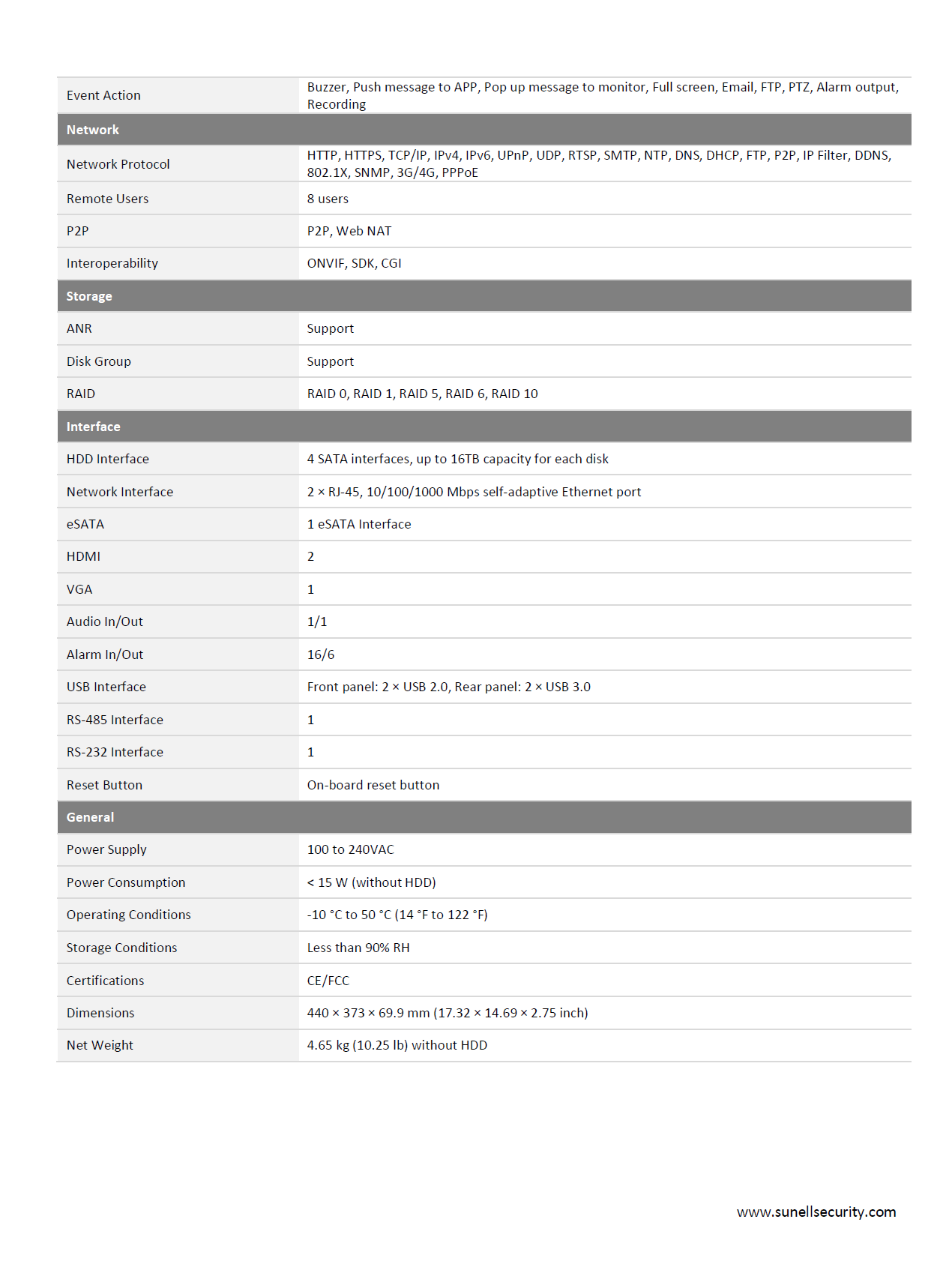 - الوصول عن بعد: يدعم المشاهدة عن بعد عبر متصفح الويب وتطبيق SunView وبرنامج SunView للكمبيوتر الشخصي