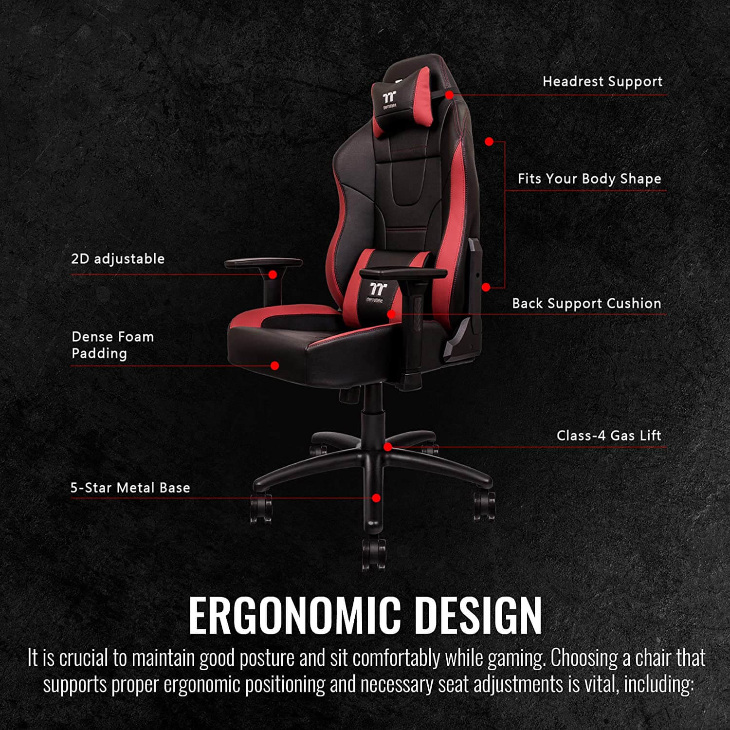 كرسي الألعاب Thermaltake TT Premium U Comfort (أحمر وأسود)